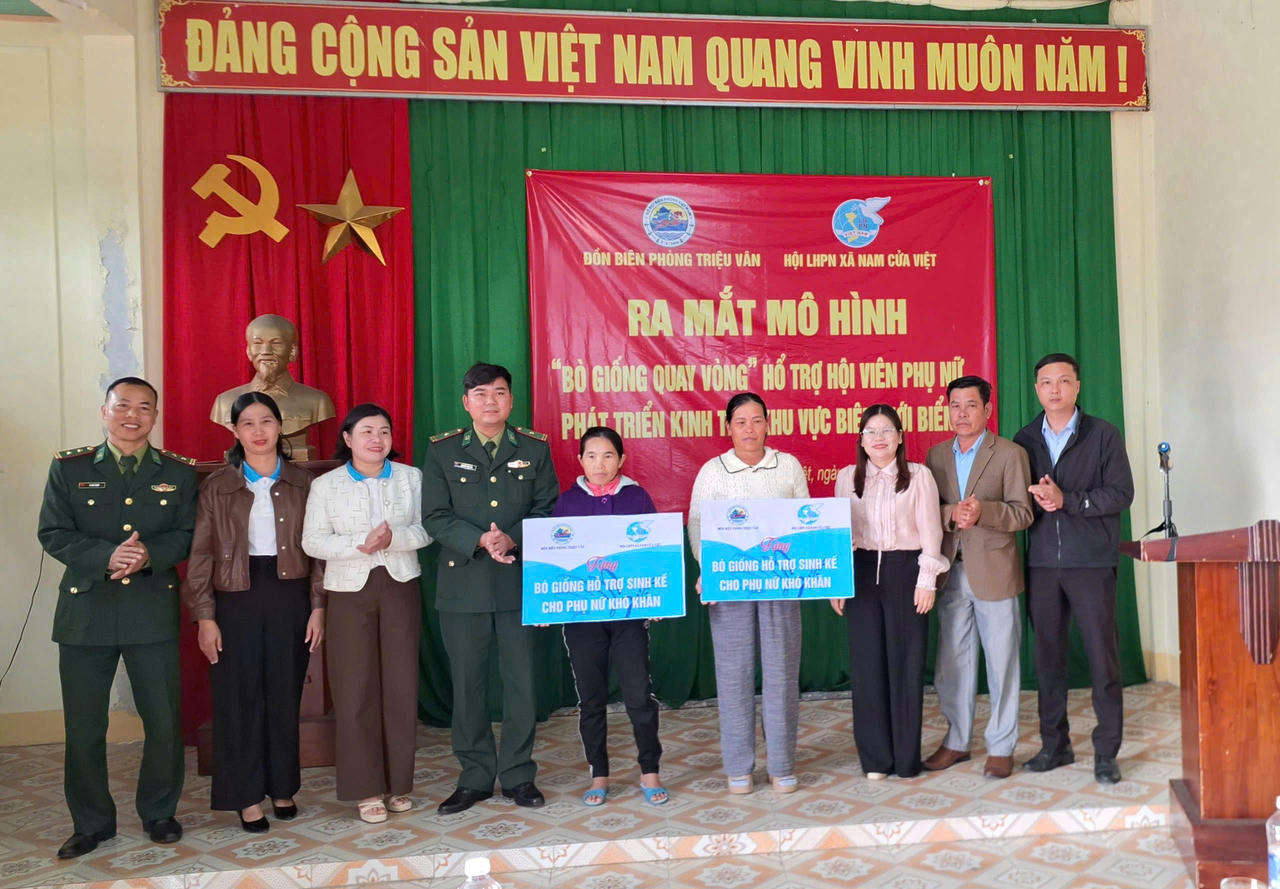 Mô hình “Bò giống quay vòng” được triển khai trên cơ sở chương trình phối hợp giữa Đồn Biên phòng Triệu Vân và Hội Liên hiệp Phụ nữ xã Nam Cửa Việt, hướng tới mục tiêu tạo sinh kế bền vững, giúp hội viên phụ nữ có hoàn cảnh khó khăn từng bước vươn lên thoát nghèo, ổn định cuộc sống, gắn bó lâu dài với địa bàn biên giới biển.