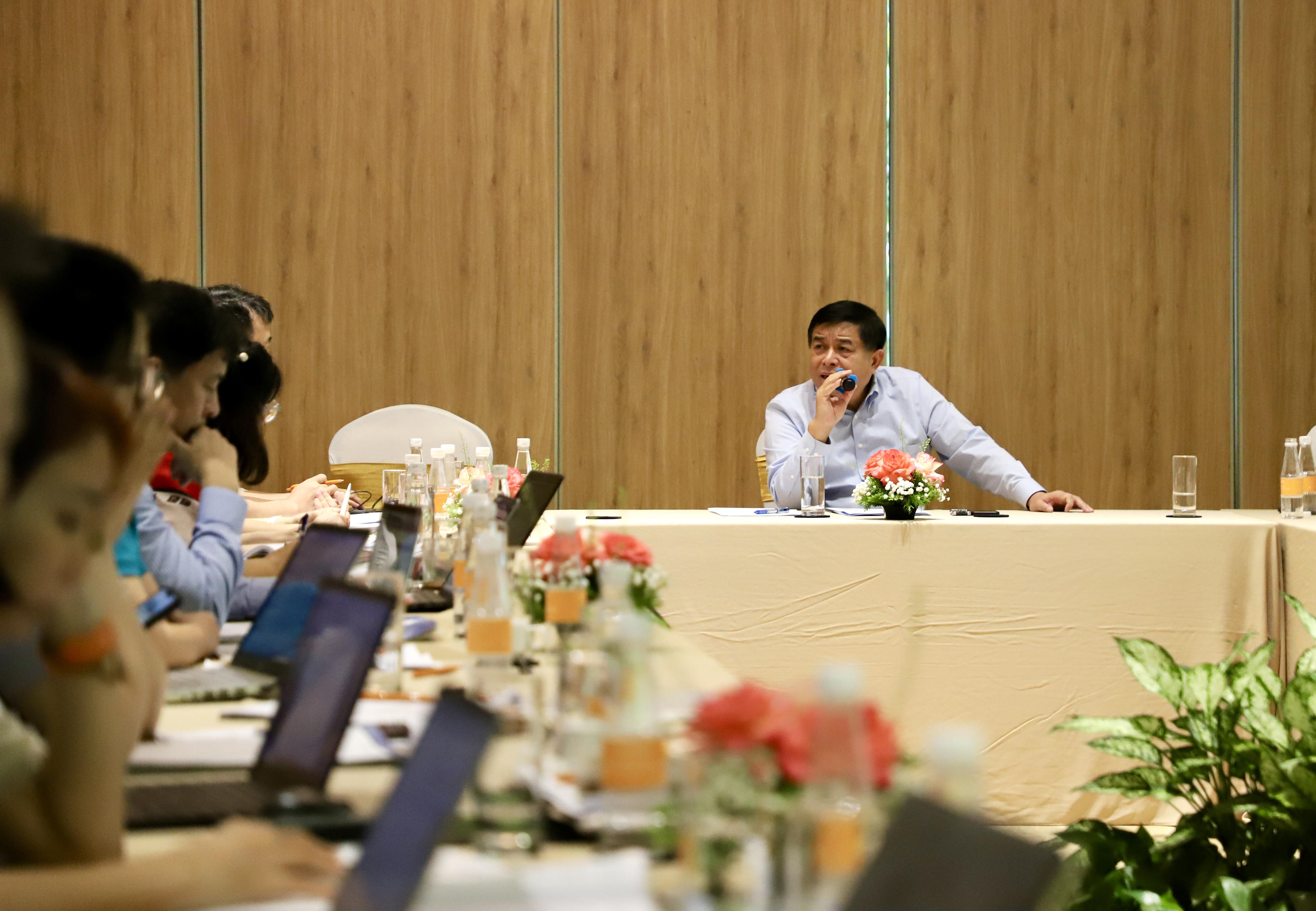 Bộ trưởng Bộ KH&ĐT chia sẻ cùng Ban soạn thảo. (ảnh: MPI) |