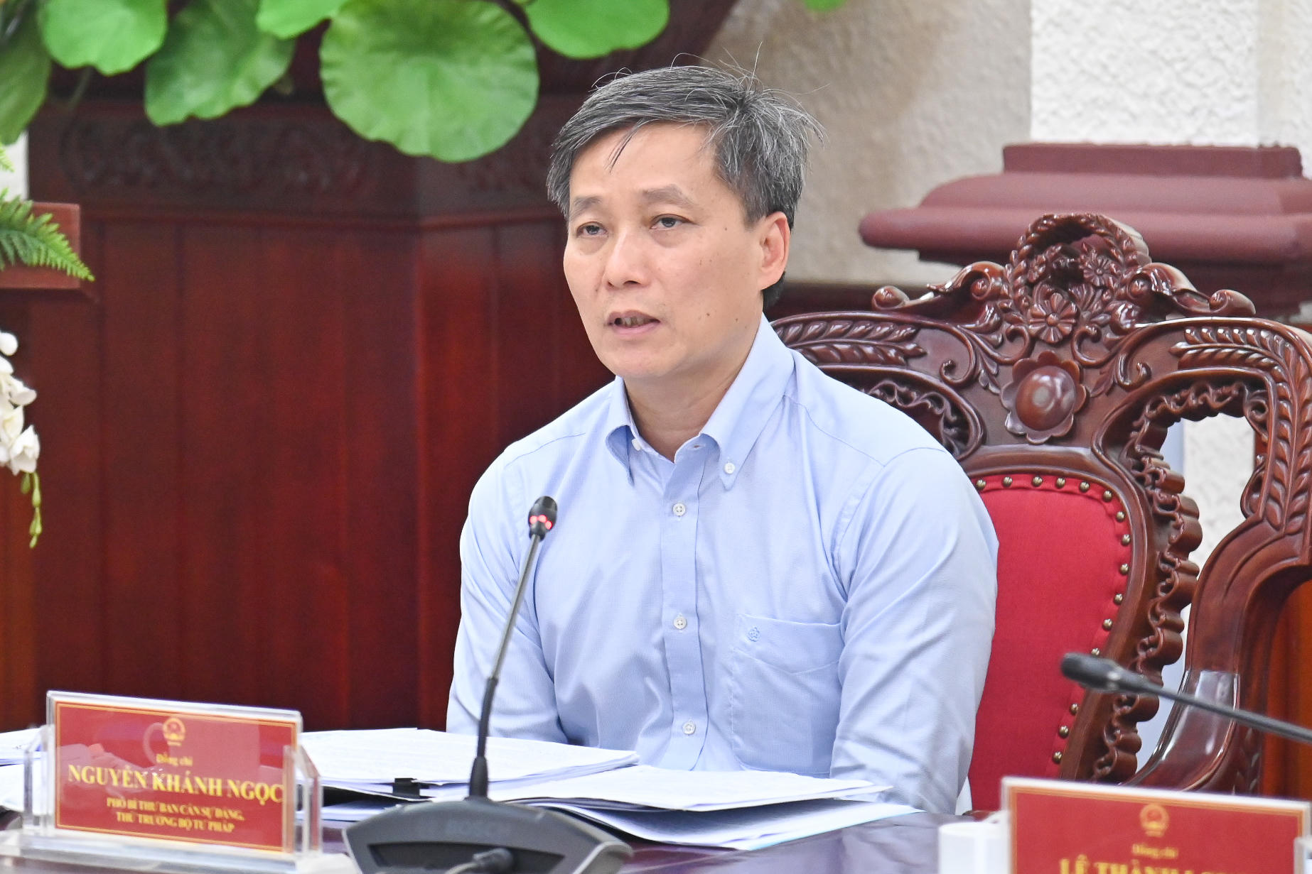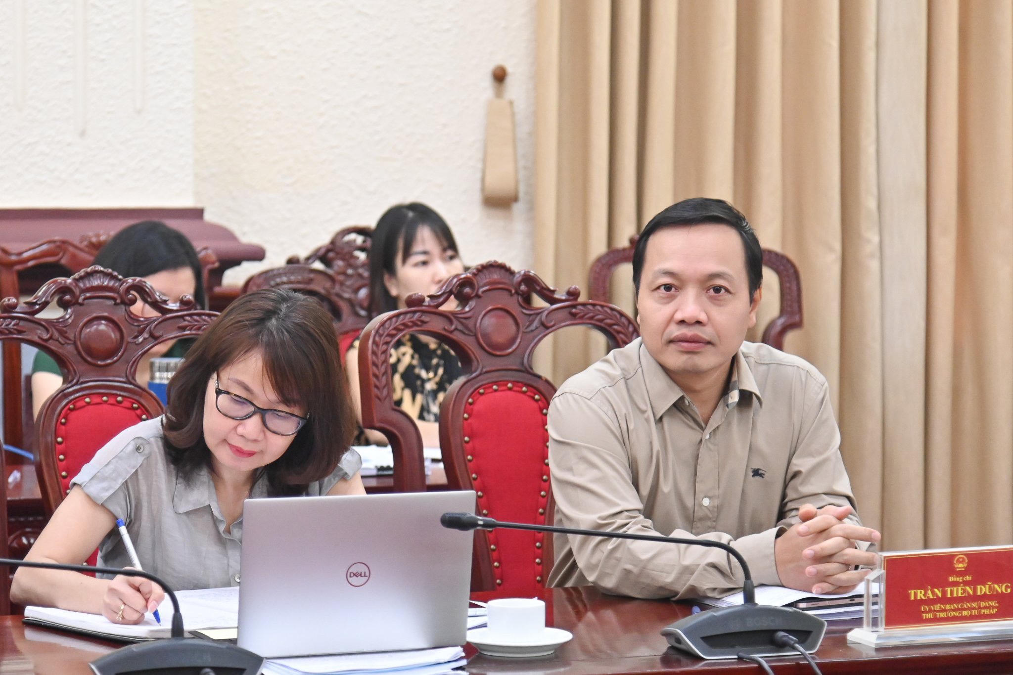 Cùng dự có đồng chí Nguyễn Khánh Ngọc, Phó Bí thư Ban cán sự đảng, Thứ trưởng Bộ Tư pháp; các đồng chí Uỷ viên Ban cán sự đảng, Thứ trưởng Bộ Tư pháp: Đặng Hoàng Oanh, Trần Tiến Dũng, Mai Lương Khôi. Hội nghị được tổ chức theo hình thức trực tiếp kết hợp trực tuyến.