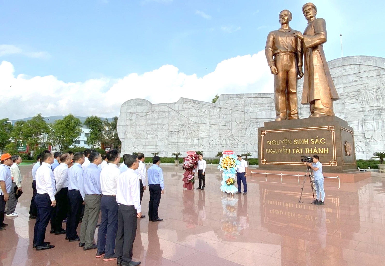 | Đoàn công tác Bộ Ngoại giao và lãnh đạo tỉnh Bình Định dâng hoa tại Tượng đài Nguyễn Sinh Sắc - Nguyễn Tất Thành (ảnh: Trang Lê). |