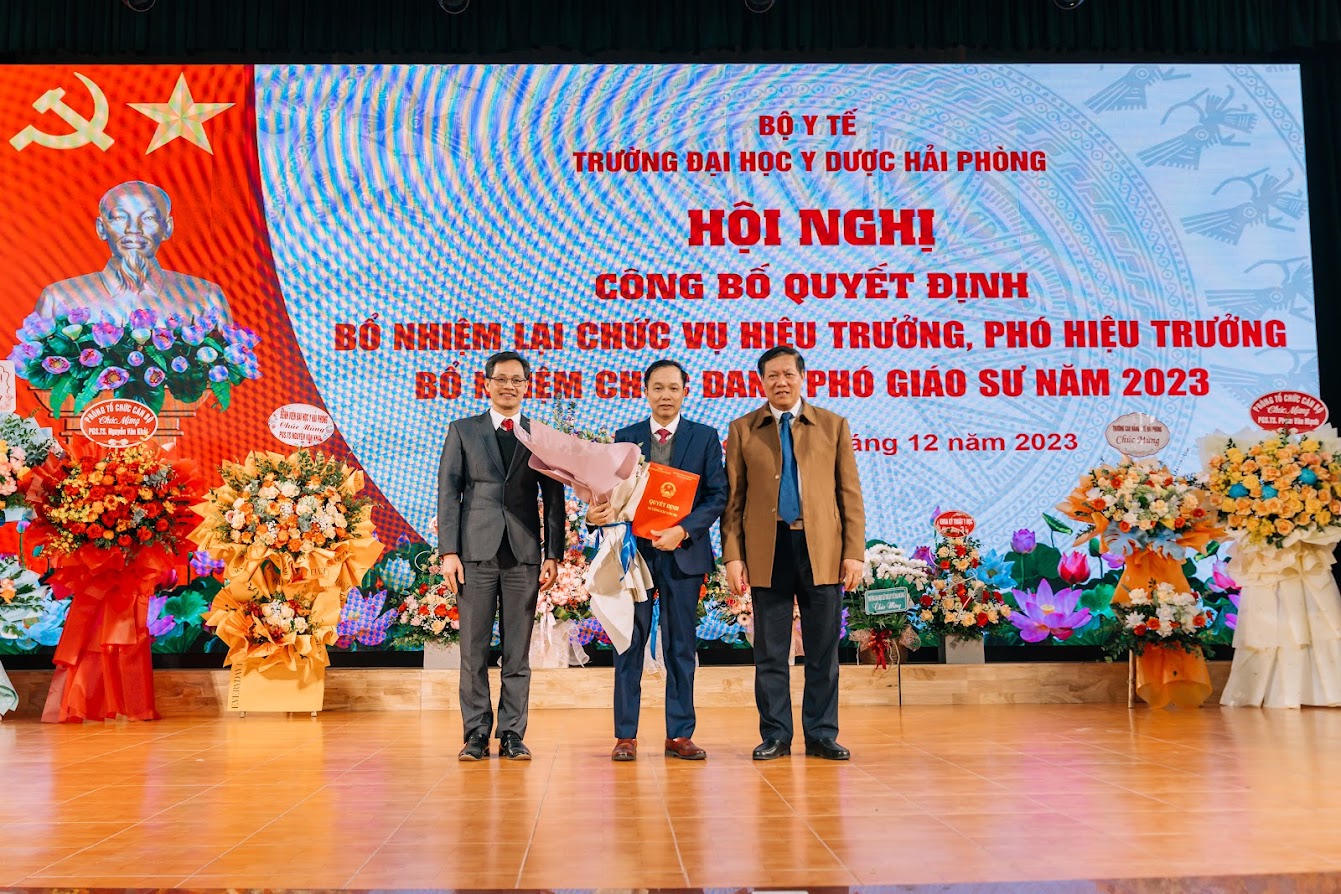 Hội nghị đã công bố Quyết định của Bộ Y tế công nhận bổ nhiệm lại chức vụ Hiệu trưởng Trường Đại học Y Dược Hải Phòng đối với PGS.TS.BS Nguyễn Văn Khải, Hiệu trưởng Trường Đại học Y Dược Hải Phòng kể từ ngày 20/12/2023. Thời hạn giữ chức vụ Hiệu trưởng thực hiện theo thời hạn của Hội đồng Trường Đại học Y Dược Hải Phòng, nhiệm kỳ 2020-2025.