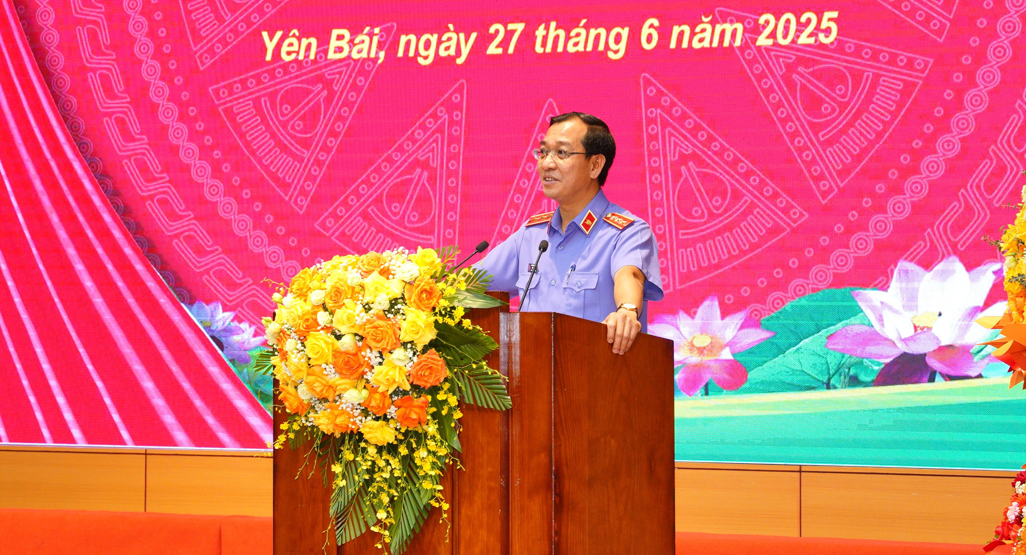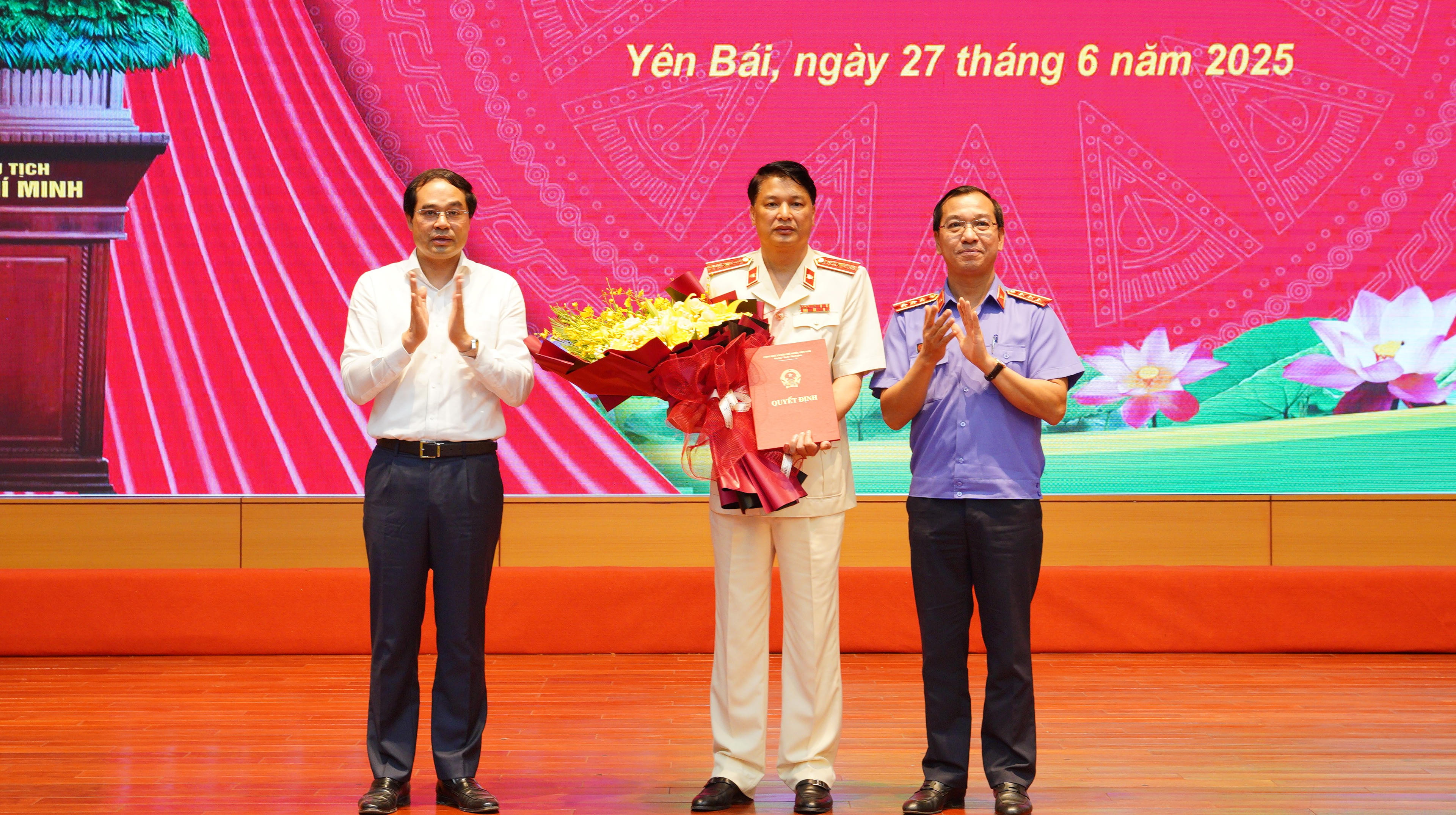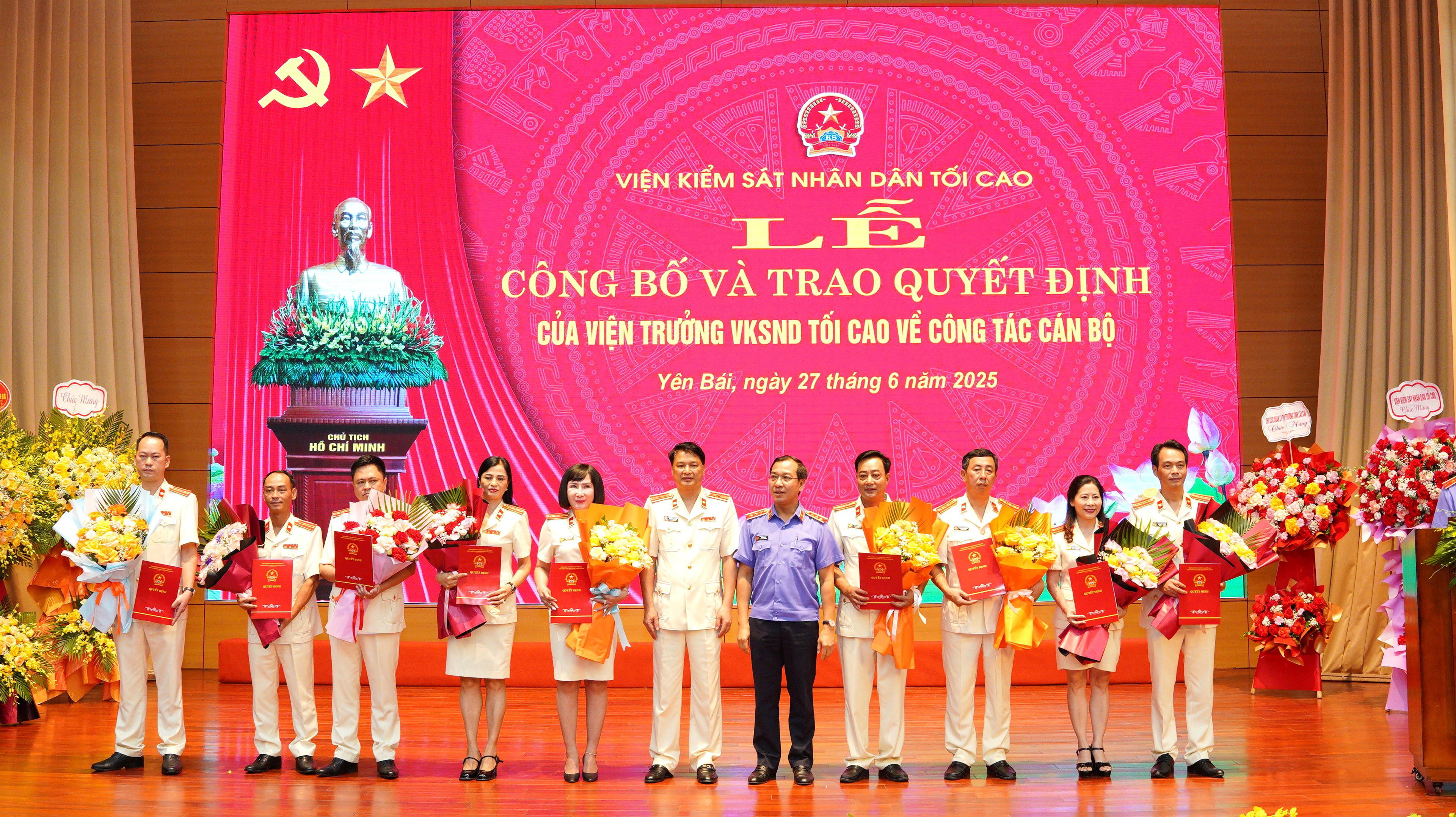 Lễ công bố và trao quyết định của Viện trưởng Viện KSND tối cao về công tác cán bộ đối với Viện KSND tỉnh Lào Cai sau hợp nhất được tổ chức tại Yên Bái sáng nay (27/6).