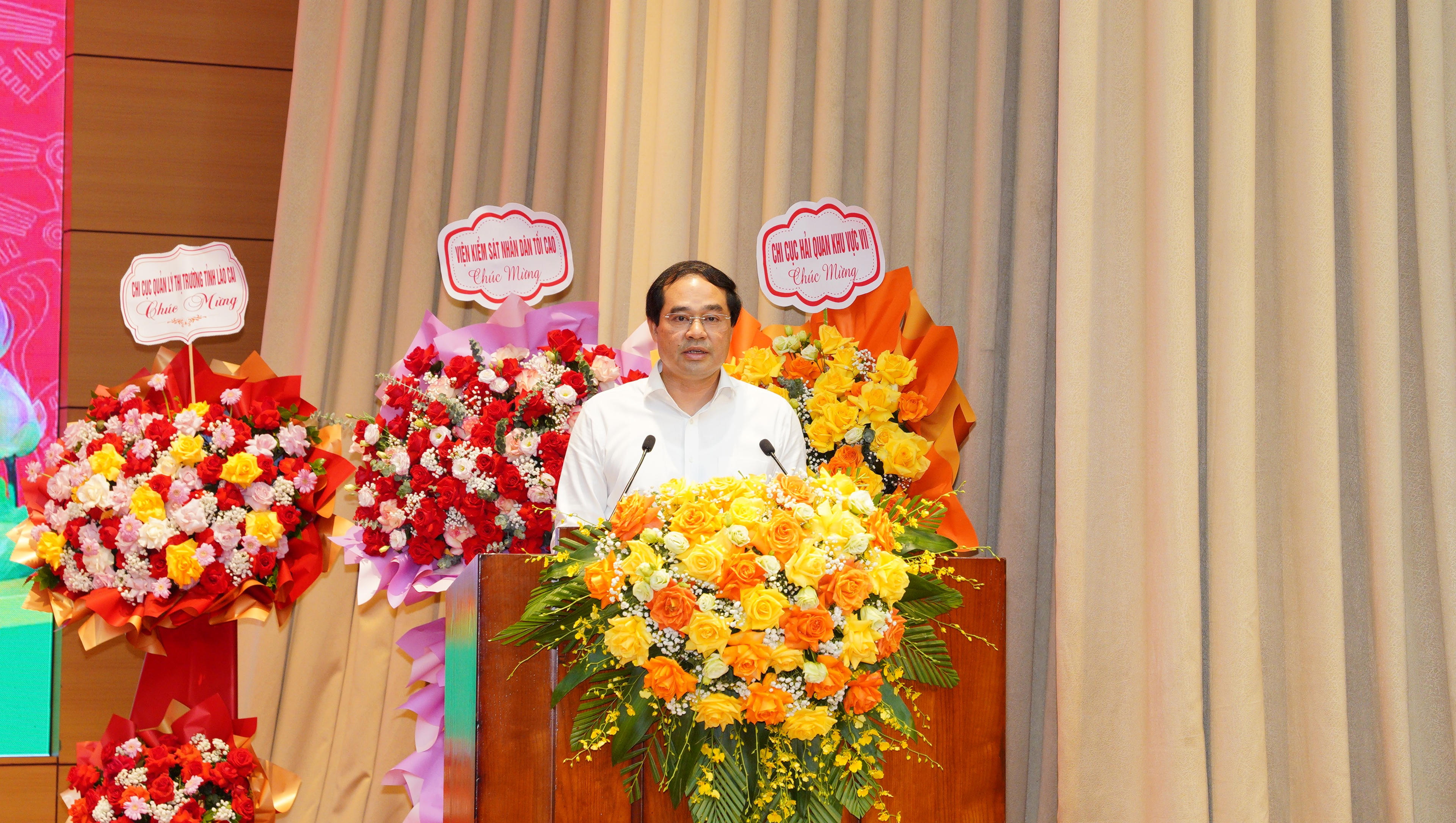 Phát biểu tại buổi Lễ, ông Trịnh Xuân Trường – Bí thư Tỉnh ủy, Chủ tịch UBND tỉnh Lào Cai đánh giá từ khi tách tỉnh Hoàng Liên Sơn năm 1991, Viện KSND 2 tỉnh Lào Cai và Yên Bái đã không ngừng phát huy vai trò, chức năng, nhiệm vụ, đặc biệt là trong công tác thực hành quyền công tố và kiểm sát các hoạt động tư pháp. Bí thư Tỉnh ủy Lào Cai chúc mừng Viện KSND 2 tỉnh đã về chung một nhà và hy vọng trong thời gian tới Viện KSND tỉnh Lào Cai sau sáp nhập sẽ nỗ lực hơn nữa để hoàn thành nhiệm vụ được giao. Ảnh: Nguyên Đức.