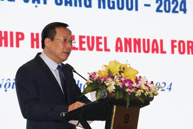 (PLVN) - Ngày 10/12, tại Hà Nội, Thứ trưởng Bộ Nông nghiệp và Phát triển nông thôn (NN&PTNT) Phùng Đức Tiến, Thứ trưởng Bộ Y tế Lê Đức Luận cùng bà Aler Grubbs, Giám đốc quốc gia Cơ quan Phát triển quốc tế Hoa Kỳ (USAID) và bà Martina Stepheny, Giám đốc cấp cao tổ chức FOUR PAWS International (FPI) đồng chủ trì Diễn đàn cấp cao năm 2024 về Một sức khỏe phòng chống dịch bệnh từ động vật sang người.