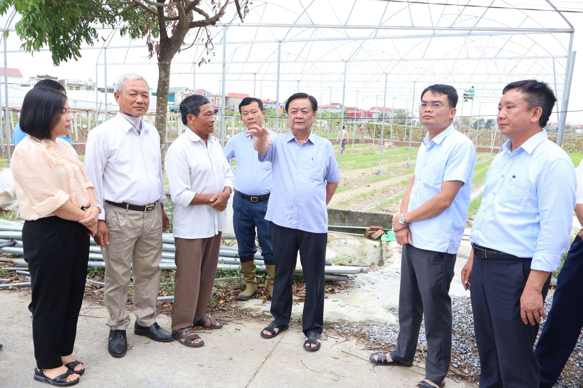 | Đoàn công tác đi kiểm tra thực tế tại Khu nhà màng, nhà lưới và vùng sản xuất rau màu tại xã Phạm Trấn, huyện Gia Lộc. |