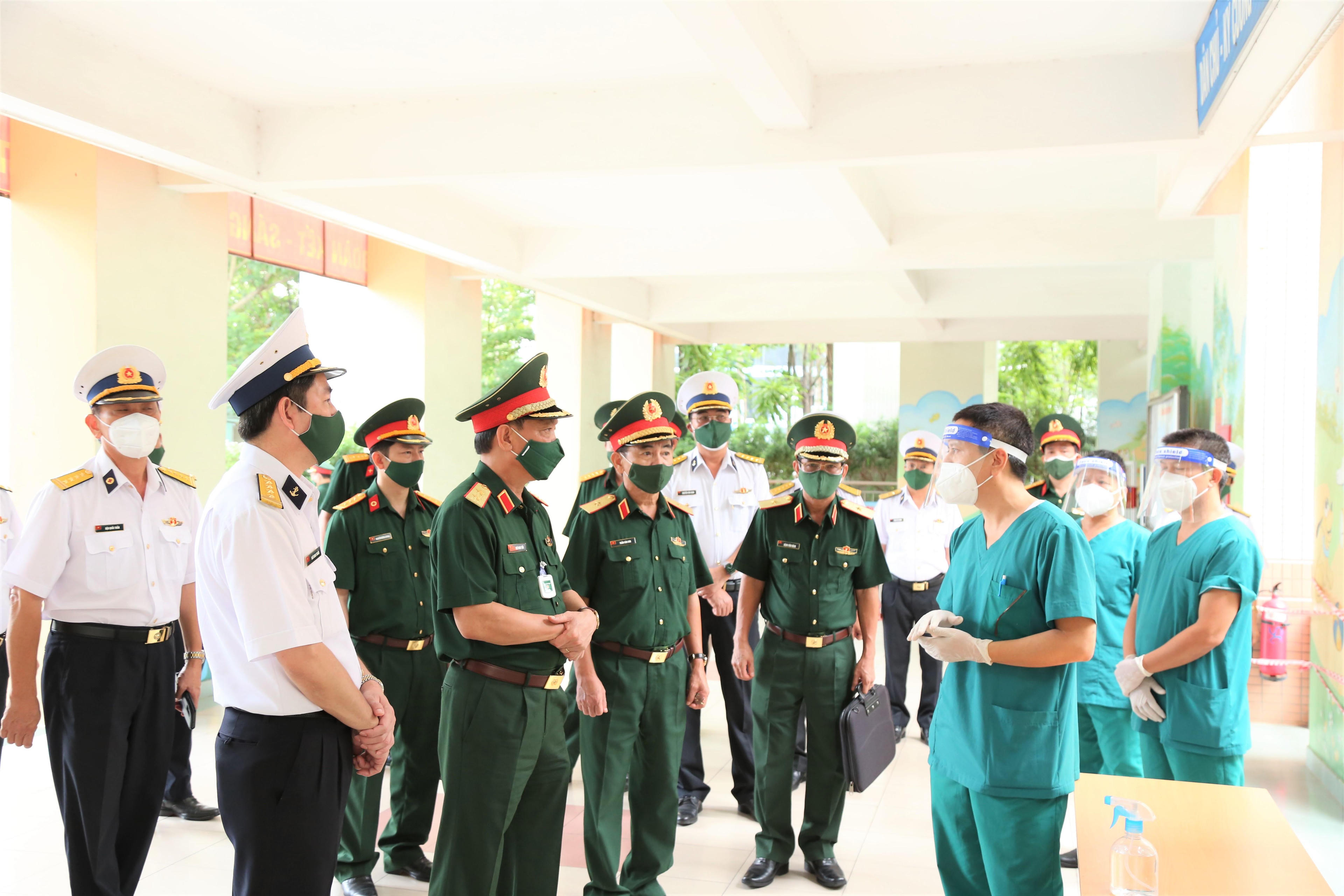 Trung tướng Ngô Minh Tiến thăm, động viên các y bác sỹ và người lao đông của Tổng công ty tại khu cách ly tập trung Trường Mầm non Sơn Ca. |