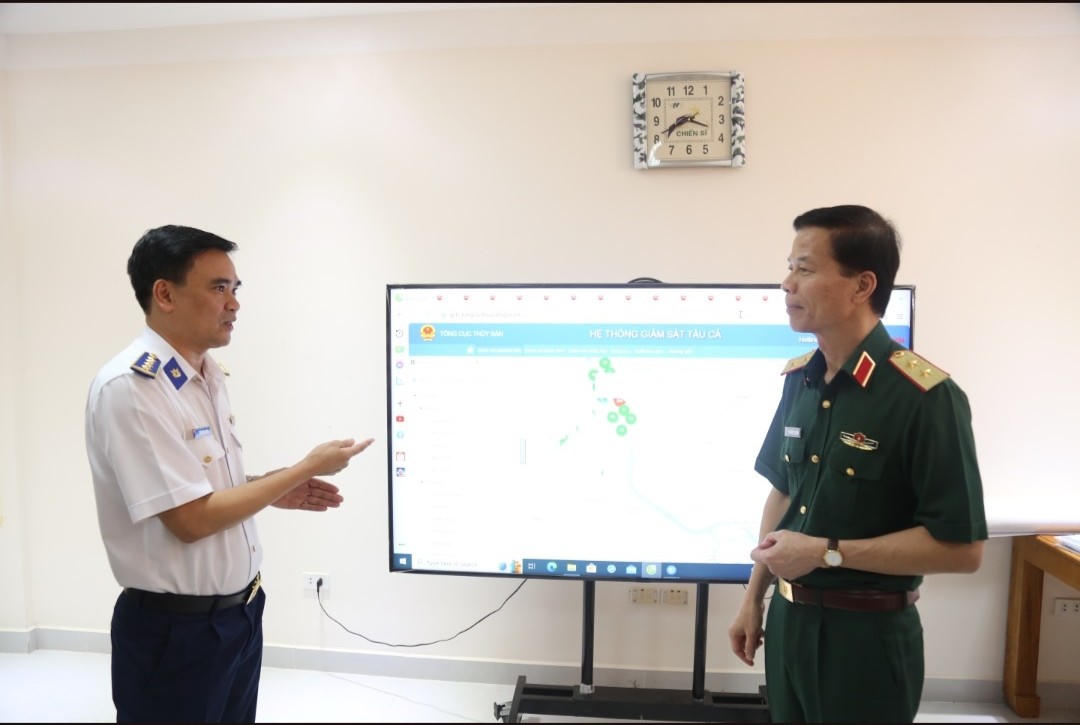 Đoàn công tác trực tiếp kiểm tra tình hình thực hiện nhiệm vụ của Sở Chỉ huy Liên hợp chống khai thác IUU, kiểm tra tình hình hoạt động của tàu thuyền trên biển thông qua trung tâm chỉ huy. Đồng thời kiểm tra việc đăng ký, báo cáo và xử lý của các lực lượng thực hiện nhiệm vụ đối với các tàu hoạt động trên các vùng biển, nhất là việc nhắc nhở, kêu gọi, tuyên truyền cho tàu thuyền không vượt ranh sang vùng biển nước ngoài để khai thác hải sản.