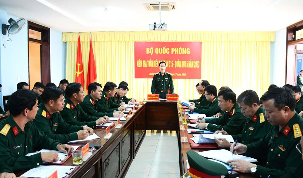 (PLVN) - Ngày 15/12, Đoàn công tác Bộ Quốc phòng do Trung tướng Nguyễn Trọng Bình, Phó Tổng Tham mưu trưởng QĐND Việt Nam làm trưởng đoàn đã đến kiểm tra toàn diện kết quả thực hiện nhiệm vụ năm 2023 tại Lữ đoàn 74 (Tổng cục II) và Sư đoàn 315 (Quân khu 5).