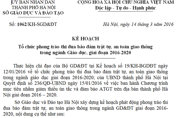 Trước đó, ngày 7/3, Sở GD&ĐT Hà Nội ra Công văn số 932 về việc tổ chức phong trào thi đua đảm bảo trật tự ATGT trong ngành giáo dục giai đoạn 2016-2020, trong đó có quy định HSSV khi vi phạm một lần sẽ bị hạ một bậc hạnh kiểm tháng mắc lỗi, phê bình trước lớp, trước trường, kiểm điểm và mời gia đình đến cam kết.