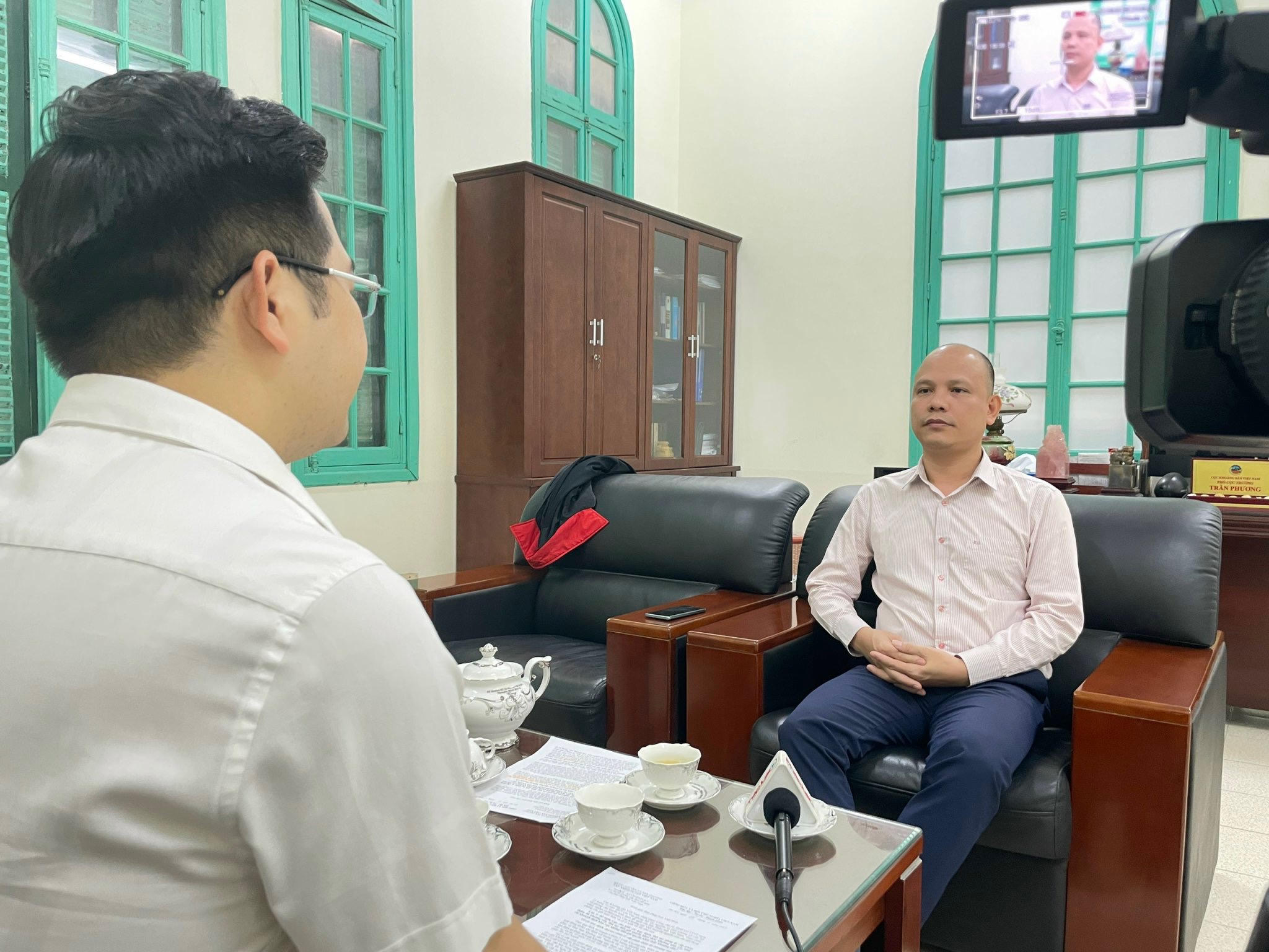Phó Cục trưởng Cục khoáng sản Việt Nam Trần Phương trao đổi thông tin với PV Báo Pháp luật Việt Nam. |