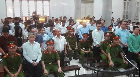 Tham gia phiên tòa có gần 60 luật sư bào chữa cho các bị cáo. Riêng bị cáo Hà Văn Thắm có 2 luật sư và bị cáo Nguyễn Xuân Sơn (SN 1962) - nguyên Chủ tịch HĐTV Tập đoàn Dầu khí Quốc gia Việt Nam (PVN), nguyên TGĐ Oceanbank có 4 luật sư bào chữa.