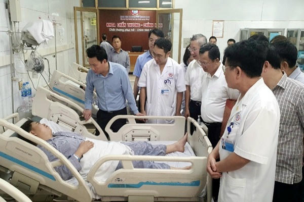 ![]() Bộ trưởng Đặng Quốc Khánh và Chủ tịch UBND tỉnh Quảng Ninh Cao Tường Huy, đến thăm, động viên các công nhân bị thương. |