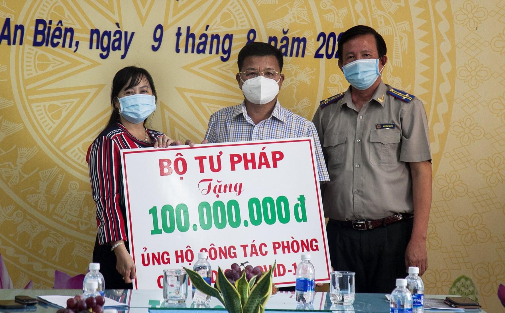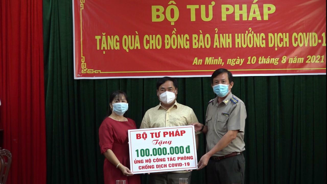 Đây là số tiền Bộ trưởng Bộ Tư pháp Lê Thành Long cùng Báo Pháp luật Việt Nam, các đơn vị khác thuộc Bộ Tư pháp và các cơ quan hữu quan quyên góp theo lời kêu gọi của Uỷ ban Mặt trận Tổ quốc Việt Nam các huyện Vĩnh Thuận, U Minh Thượng, An Biên, An Minh và huyện Châu Thành.