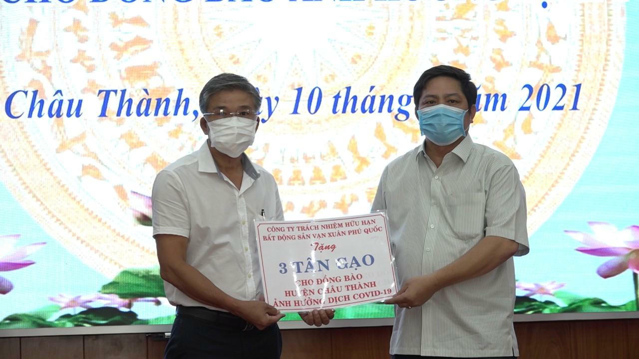 Cụ thể, đại diện các đơn vị đã trao cho huyện Vĩnh Thuận (150 triệu đồng), U Minh Thượng (50 triệu đồng), An Biên (100 triệu đồng), An Minh (100 triệu đồng), Châu Thành (100 triệu đồng). Món quà nhằm chia sẻ, giúp đỡ với người dân gặp khó khăn do dịch bệnh COVID-19. Bà Nguyễn Thị Kim Bé - Tỉnh uỷ viên, Phó trưởng đoàn chuyên trách Đoàn Đại biểu Quốc hội tỉnh Kiên Giang, cùng tham gia trao quà tại huyện Châu Thành.