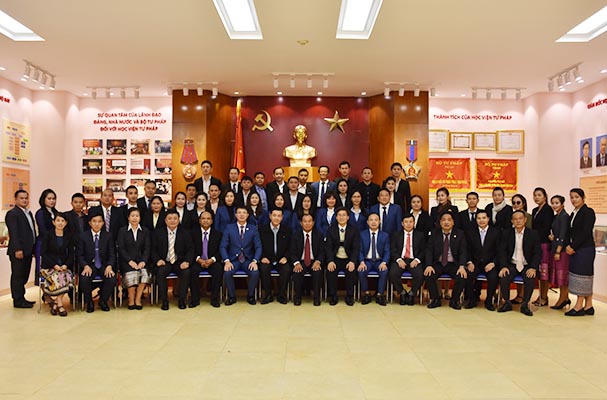 Sáng 10/12, đoàn công tác của Bộ Tư pháp nước CHDCND Lào do Bộ trưởng Xay xỉ Xẳn tỵ vông dẫn đầu đã đến thăm và làm việc tại Học viện Tư pháp (Bộ Tư pháp Việt Nam). Tiếp đoàn có Thứ trưởng Bộ Tư pháp Việt Nam Nguyễn Khánh Ngọc, đại diện Vụ Hợp tác quốc tế cùng tập thể Ban Giám đốc Học viện Tư pháp và một số đơn vị thuộc Học viện.