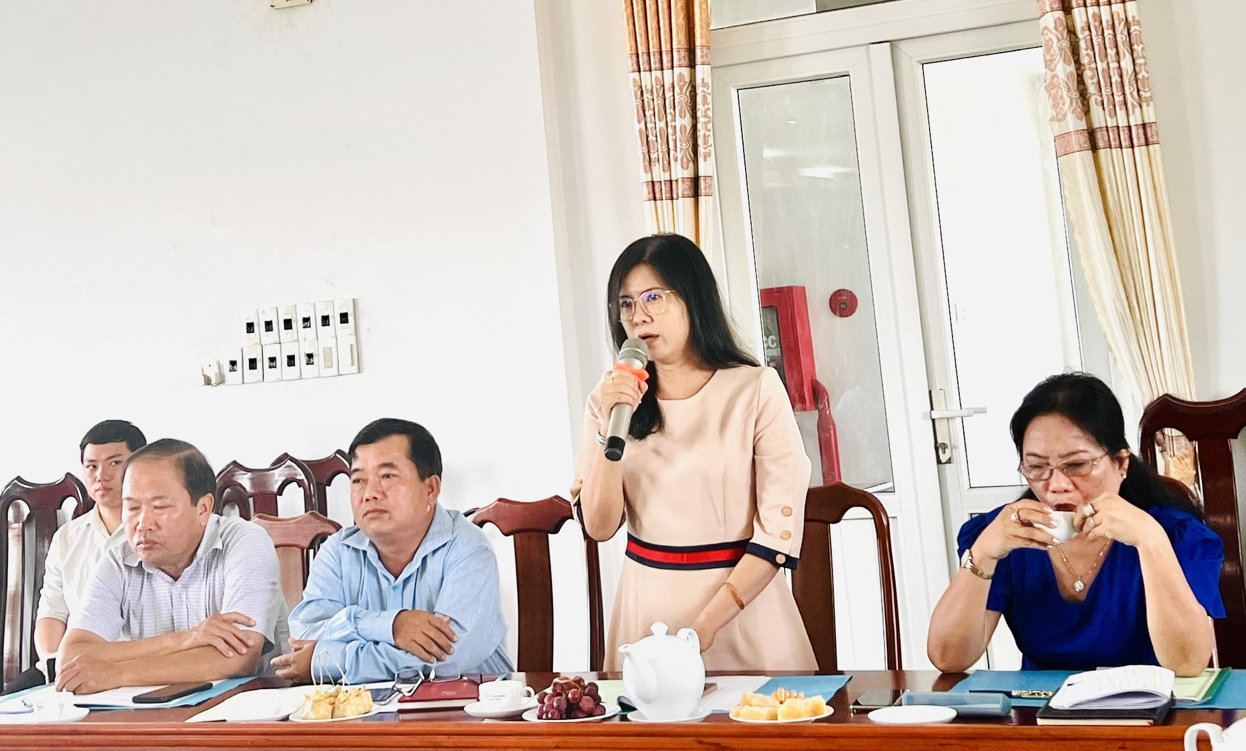Bà Hồ Thị Kim Duyên, Trưởng phòng Tư pháp Tri Tôn phát biểu tại buổi làm việc |