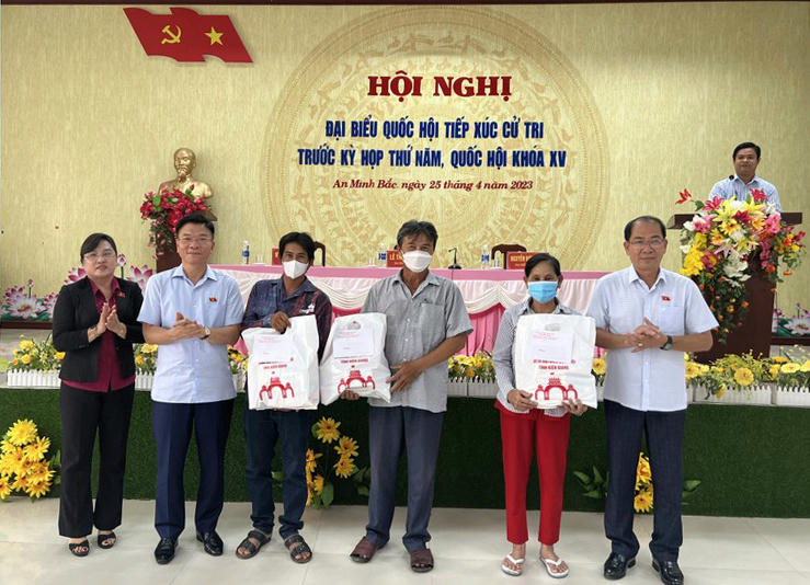 Tham dự buổi tiếp xúc cử tri có bà Nguyễn Thị Kim Bé, Tỉnh uỷ viên, Phó Trưởng đoàn chuyên trách Đoàn Đại biểu Quốc hội tỉnh Kiên Giang; Ủy viên Trung ương Đảng, Bộ trưởng Bộ Tư pháp Lê Thành Long; Phó Bí thư Thường trực Huyện uỷ An Biên Nguyễn Việt Thắng.