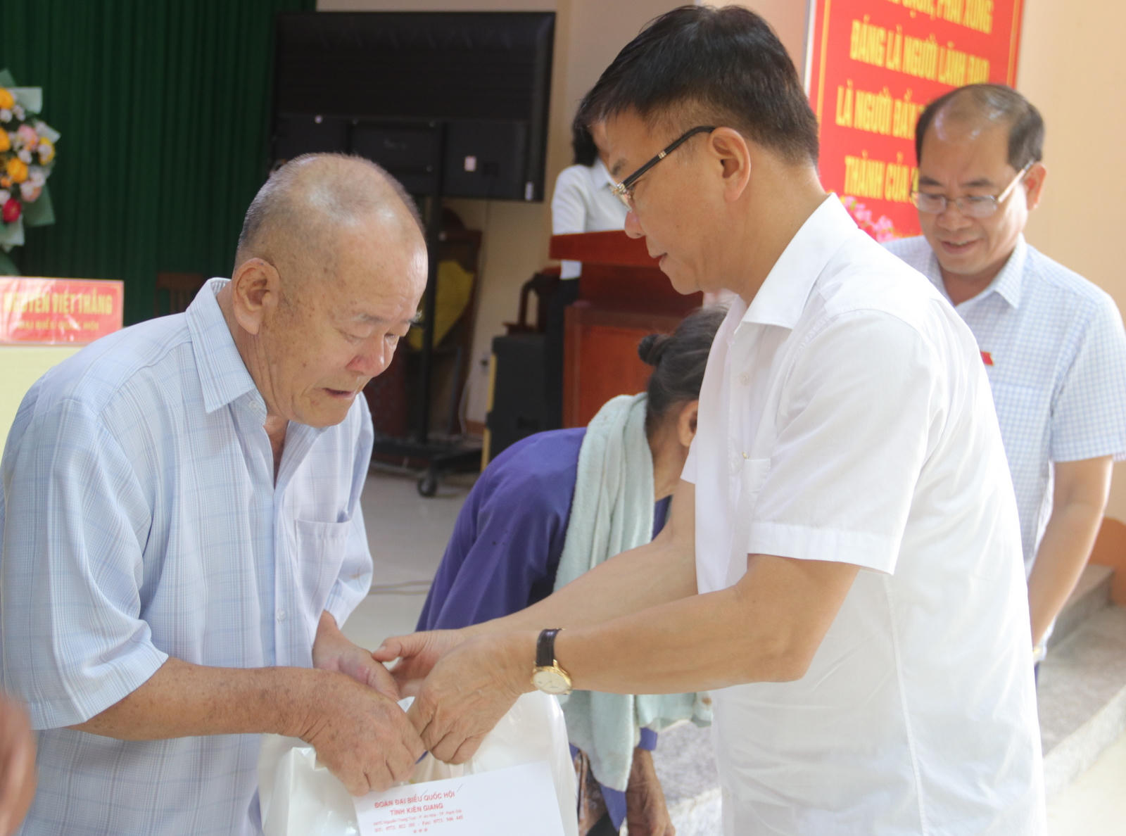 Bộ trưởng Bộ Tư pháp Lê Thành Long và Đoàn ĐBQH tỉnh Kiên Giang đã trao tặng 3 phần quà cho gia đình dân tộc thiểu số có hoàn cảnh khó khăn trên địa bàn xã |