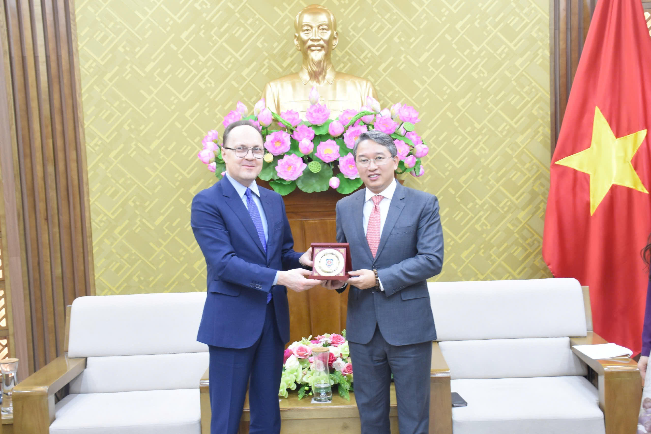 Bộ trưởng Bộ Tư pháp Nguyễn Hải Ninh và Đại sứ Đặc mệnh toàn quyền Liên bang Nga tại Việt Nam Bezdetko Gennady Stepanovich. |