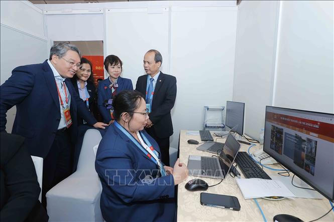 Bộ trưởng Bộ Tư pháp thăm khu vực tác nghiệp của TTXVN tại Đại hội XIV của Đảng