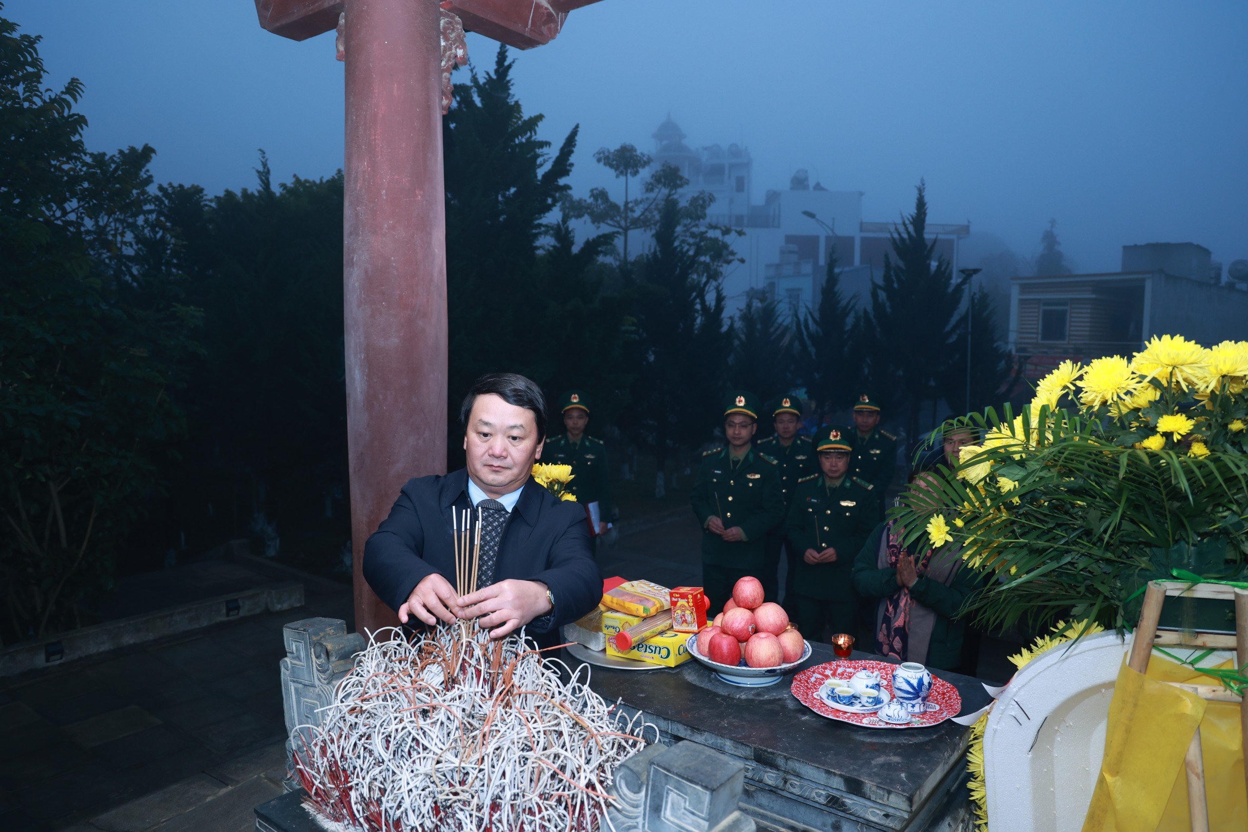 Dâng hương tại Đài tưởng niệm các Anh hùng, liệt sĩ Đồn Biên phòng Pha Long. |