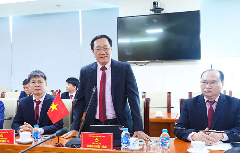 Tổng Giám đốc NHCSXH Dương Quyết Thắng phát biểu tại buổi làm việc. |