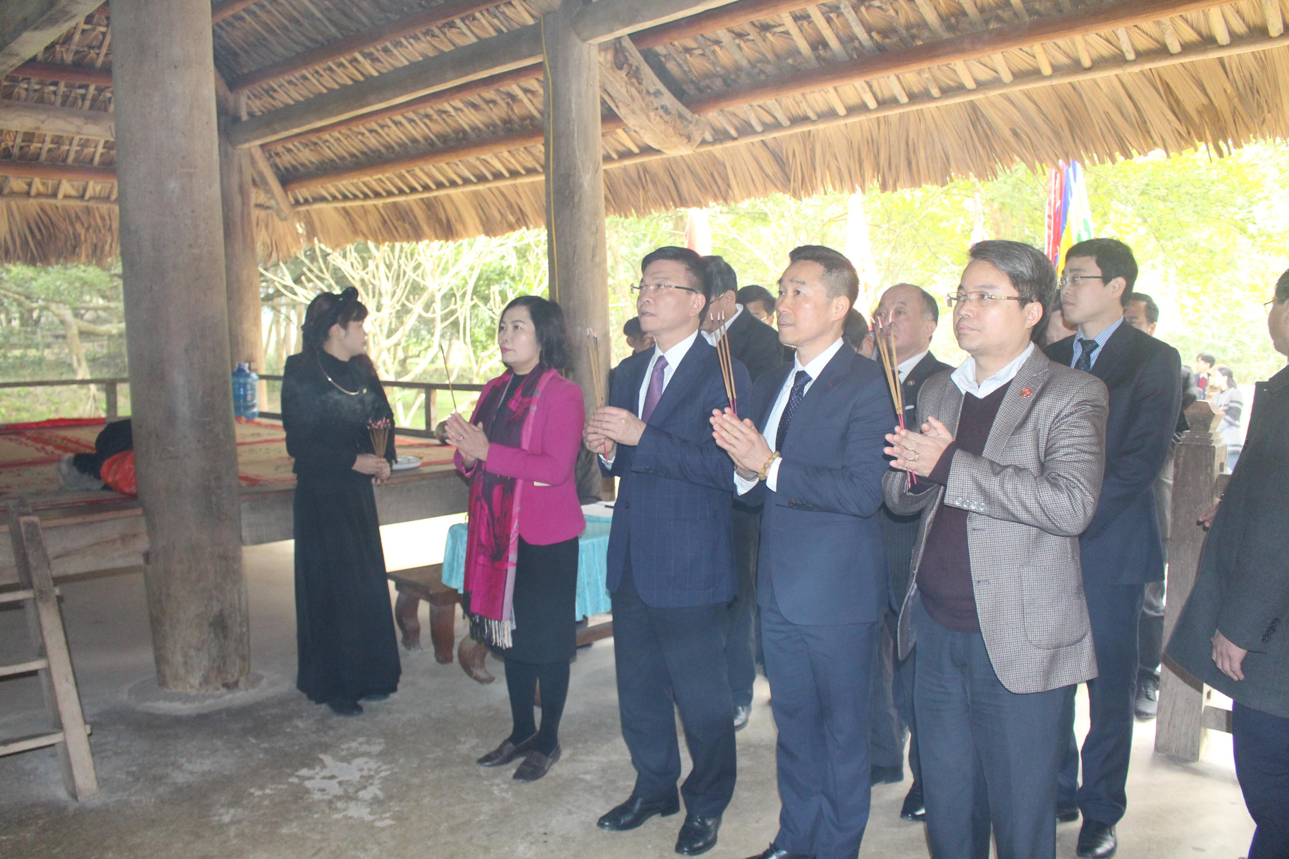 | Bộ trưởng và Đoàn công tác dâng hương tại đình Tân Trào và lán Nà Nưa - những di tích lịch sử cách mạng ghi dấu ấn hoạt động của Bác Hồ và chính quyền cách mạng hơn 70 năm trước |