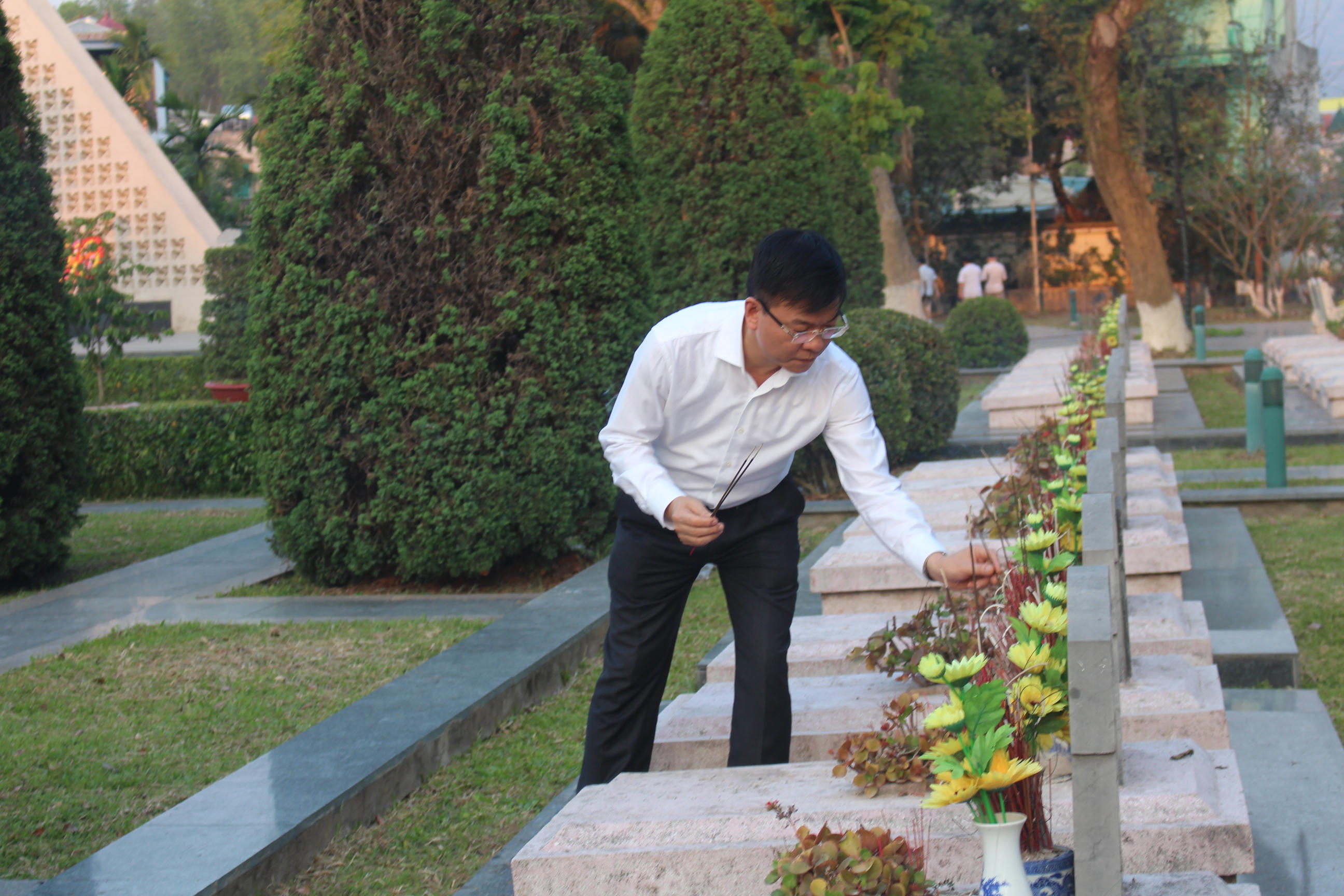 Bộ trưởng Lê Thành Long dâng hương tại Nghĩa trang liệt sĩ Đồi A1