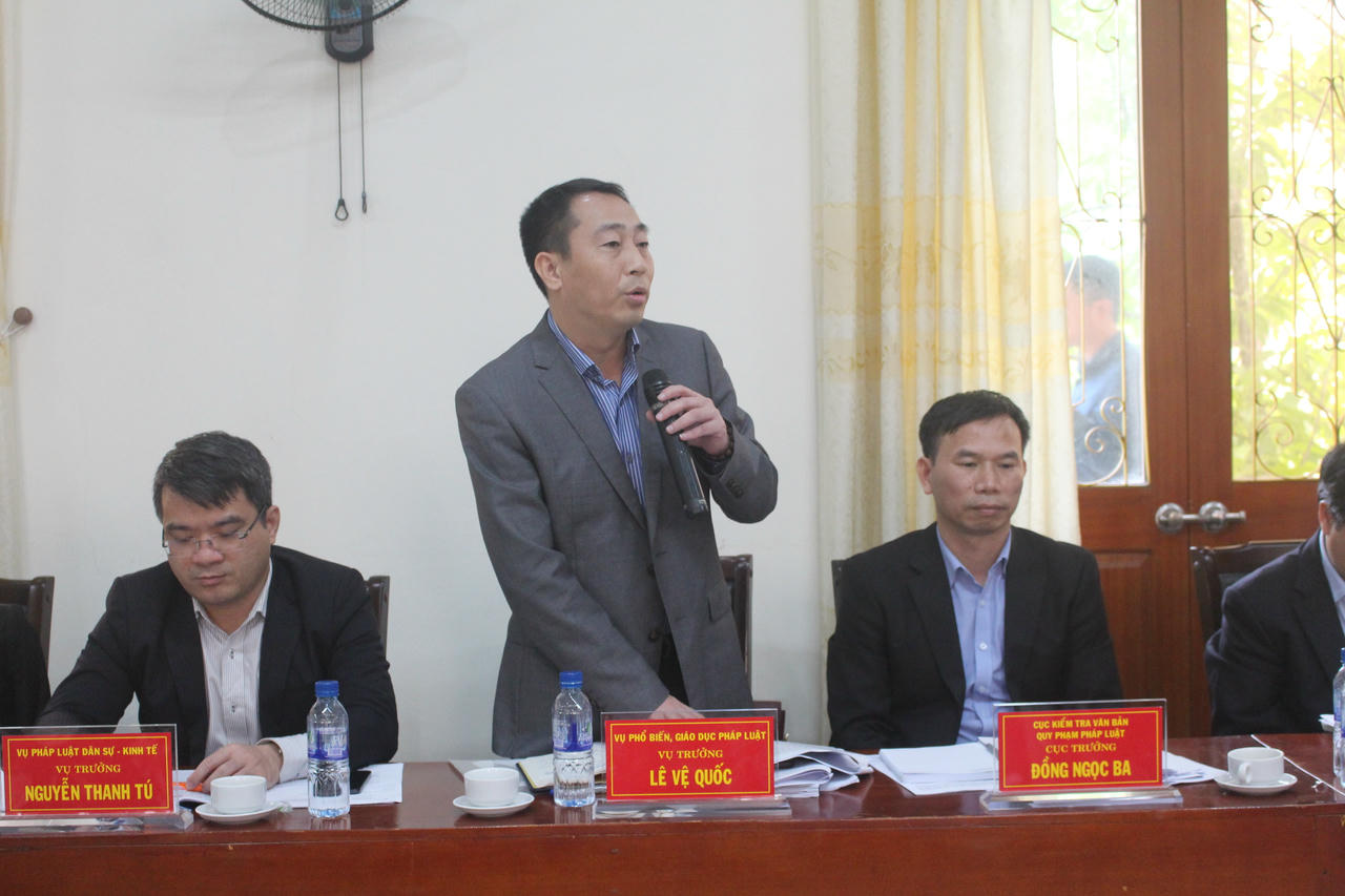 Vụ trưởng Vụ PBGDPL Lê Vệ Quốc đề nghị địa phương quan tâm đến chuẩn tiếp cận pháp luật, tăng cường hơn nữa ứng dụng công nghệ thông tin vào công tác PBGDPL trong bối cảnh phải tinh giản bộ máy, biên chế hiện nay.