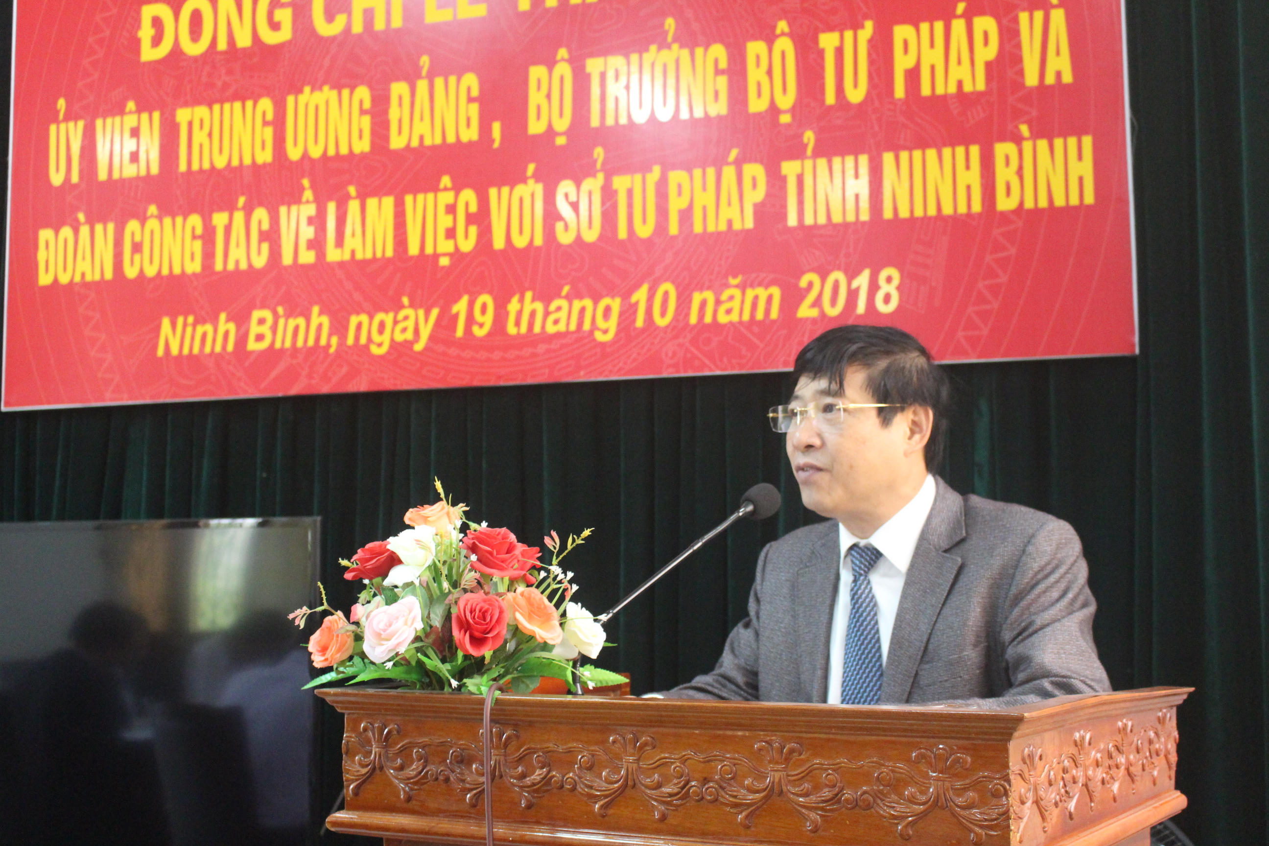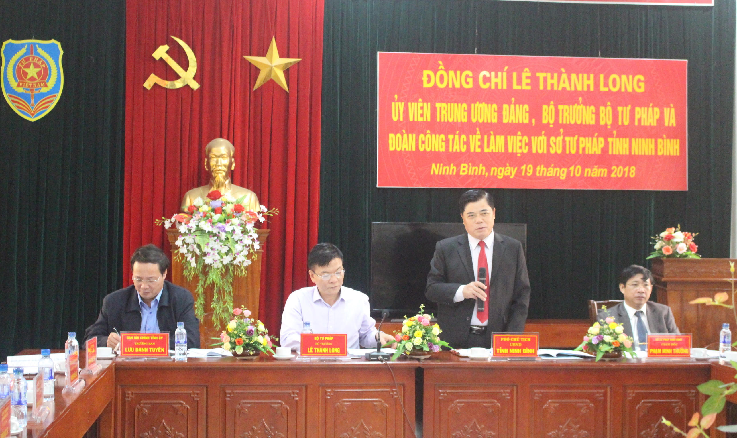 Bộ trưởng Lê Thành Long đang làm việc tại Ninh Bình về công tác Tư pháp