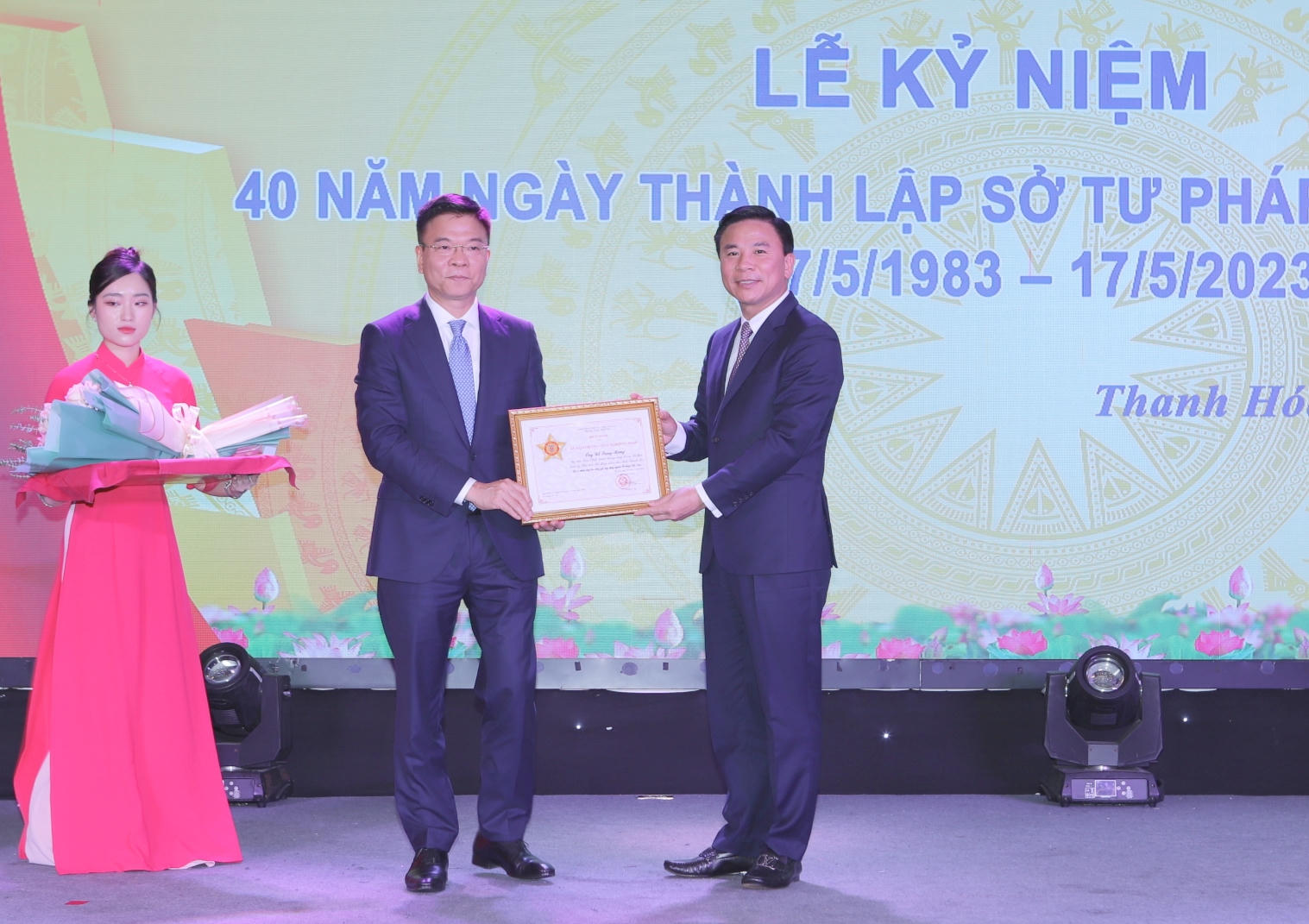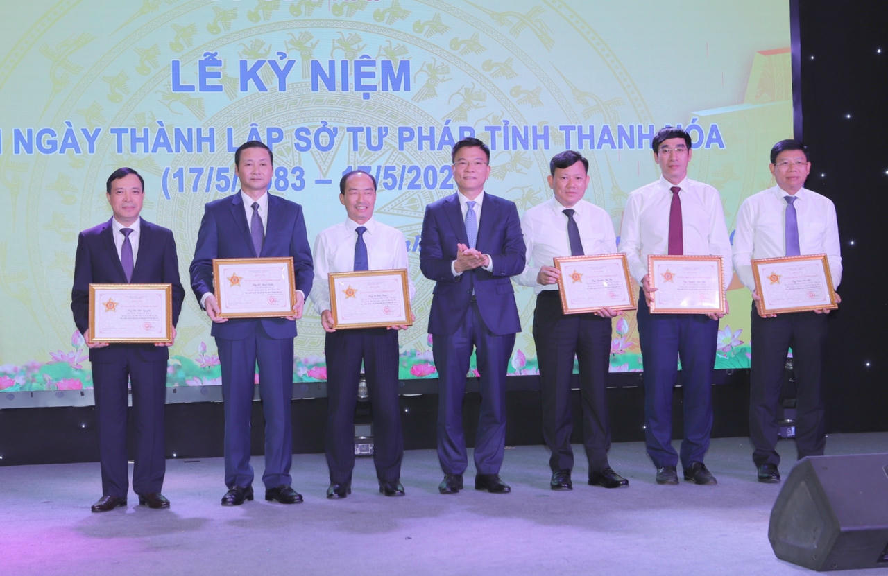Cũng tại buổi lễ, Bộ trưởng Bộ Tư pháp đã trao kỷ niệm chương “Vì sự nghiệp tư pháp” cho 20 cá nhân đã có nhiều công lao, thành tích đóng góp cho sự nghiệp xây dựng và phát triển của ngành tư pháp; tặng Bằng khen cho 5 tập thể, 9 cá nhân vì đã có thành tích xuất sắc đóng góp trong quá trình 40 năm xây dựng và phát triển Sở Tư pháp. UBND tỉnh Thanh Hoá tặng Bằng khen cho 2 tập thể và 6 cá nhân vì có nhiều đóng góp nổi bật trong quá trình xây dựng và phát triển nhân dịp kỷ niệm 40 năm ngày thành lập Sở Tư pháp.