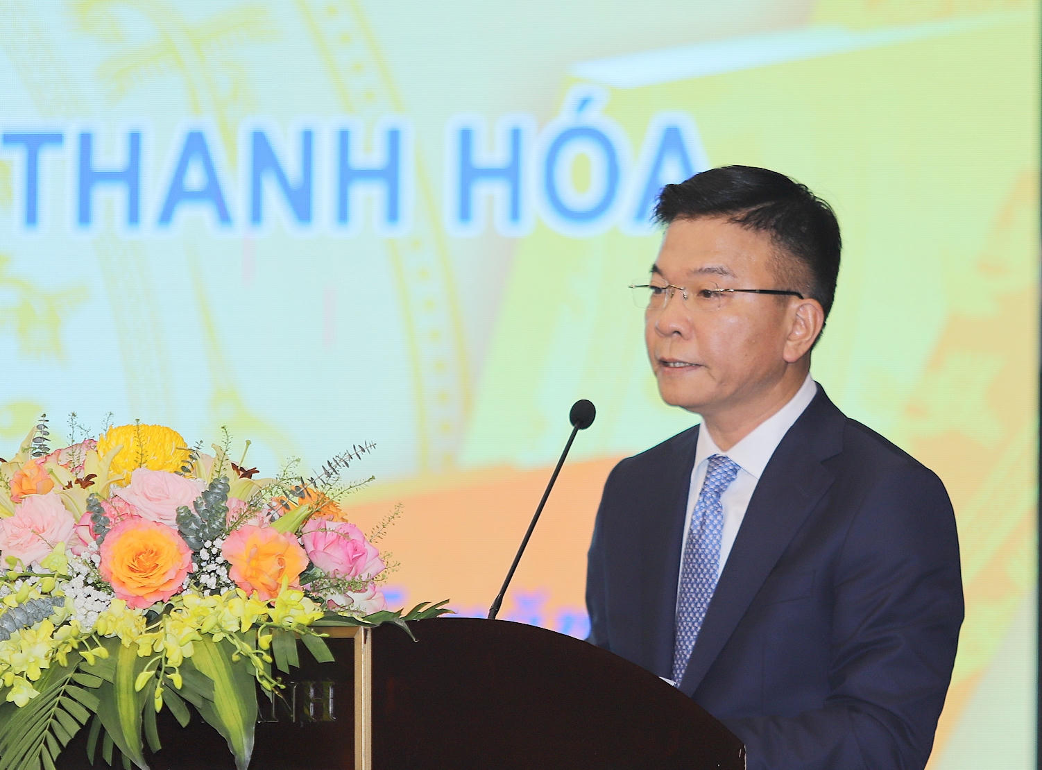 Bộ trưởng Bộ Tư pháp Lê Thành Long phát biểu chúc mừng và giao nhiệm vụ cho ngành Tư pháp Thanh Hoá |