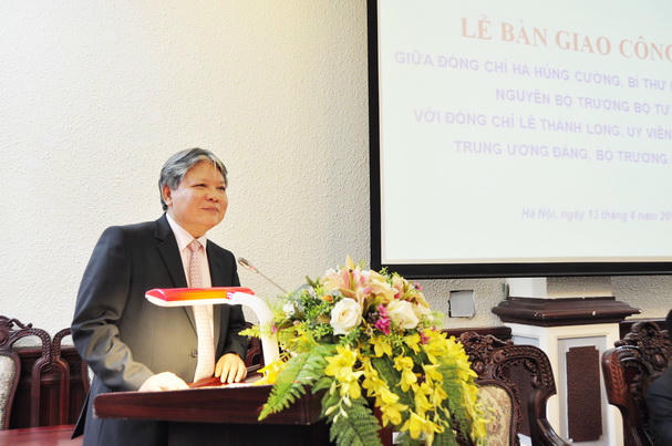 Phát biểu tại buổi lễ, nguyên Bộ trưởng Hà Hùng Cường cho biết việc bàn giao rất thuận lợi vì tân Bộ trưởng đã có thời gian công tác lâu dài tại Bộ, có sự hiểu biết sâu sắc và gắn bó với công việc của Bộ, của ngành. Người tiền nhiệm nhắn nhủ Bộ trưởng Lê Thành Long tiếp tục gương mẫu thực hiện khẩu hiệu "Đoàn kết, kỷ cương, trách nhiệm, đổi mới, phát triển" để đưa công tác tư pháp vươn tới tầm cao mới, nhất là công tác tư pháp ở cơ sở.