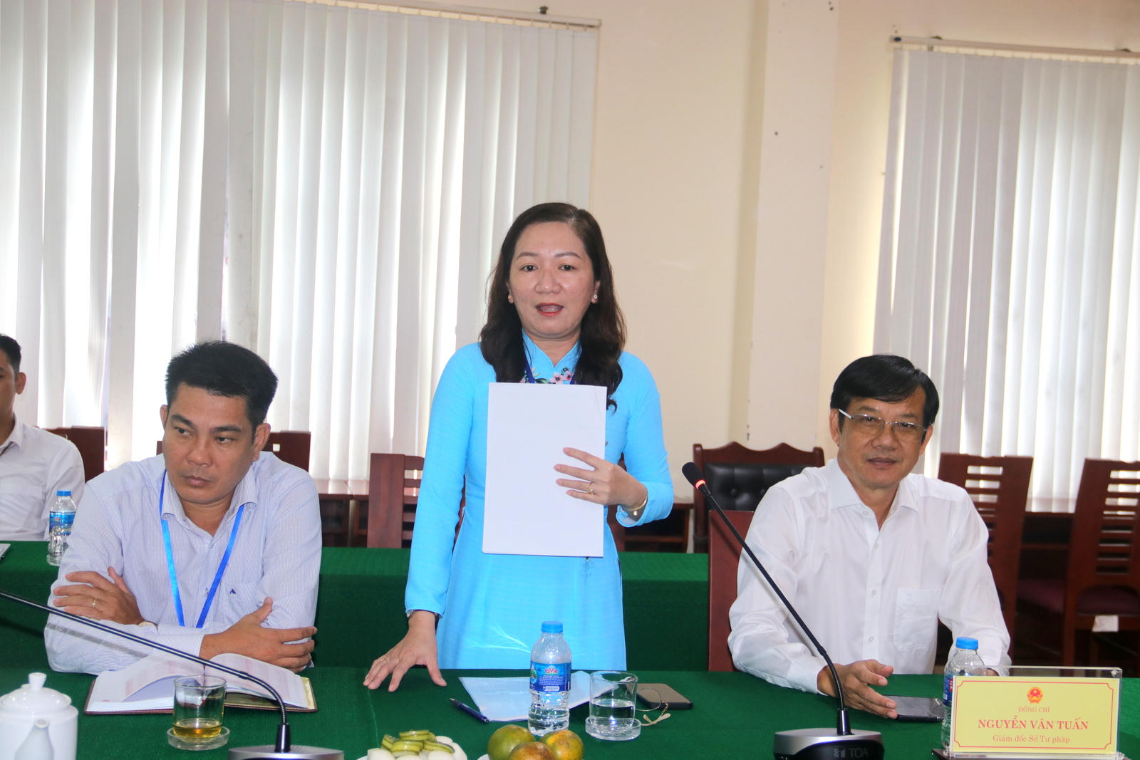 Bà Trần Phượng Quyên - Phó Giám đốc Sở Tư pháp tỉnh Hậu Giang báo cáo với Bộ trưởng |