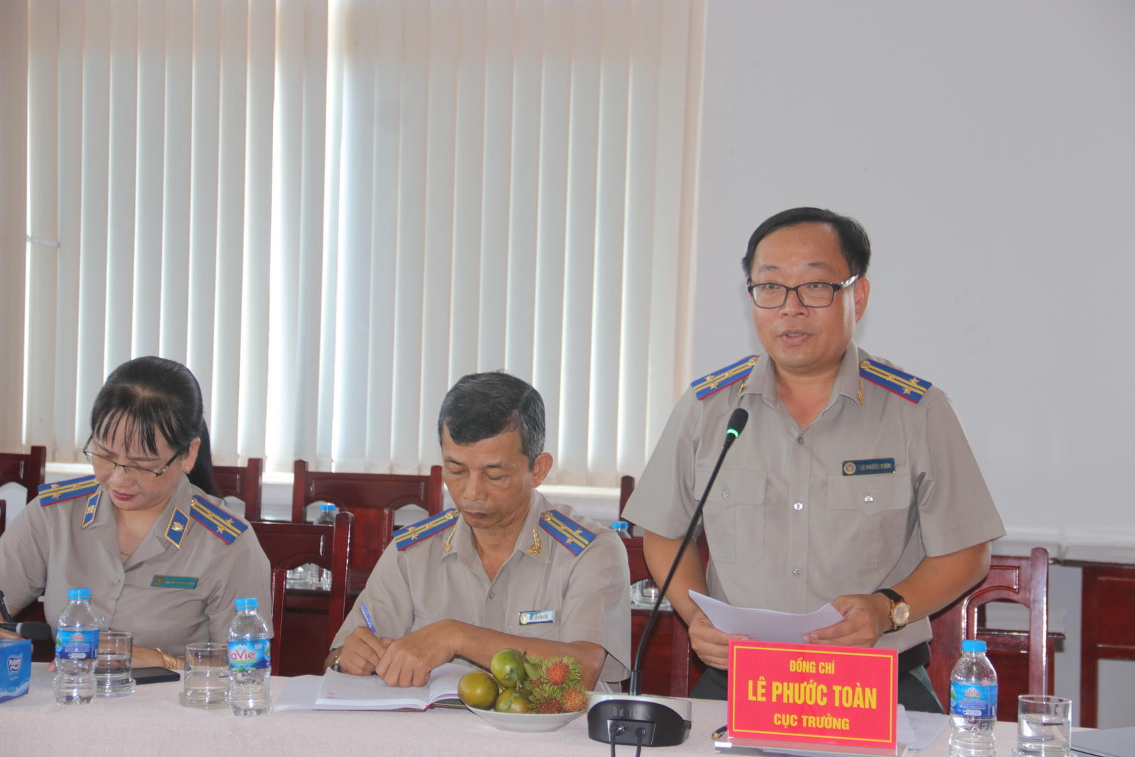 Ông Lê Phước Toàn – Cục trưởng Cục THADS tỉnh Hậu Giang báo cáo với Đoàn công tác |