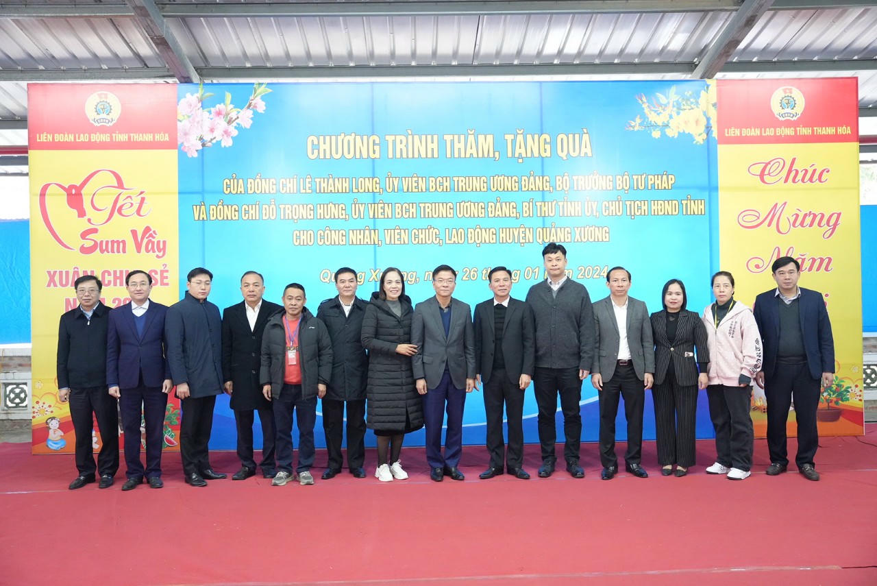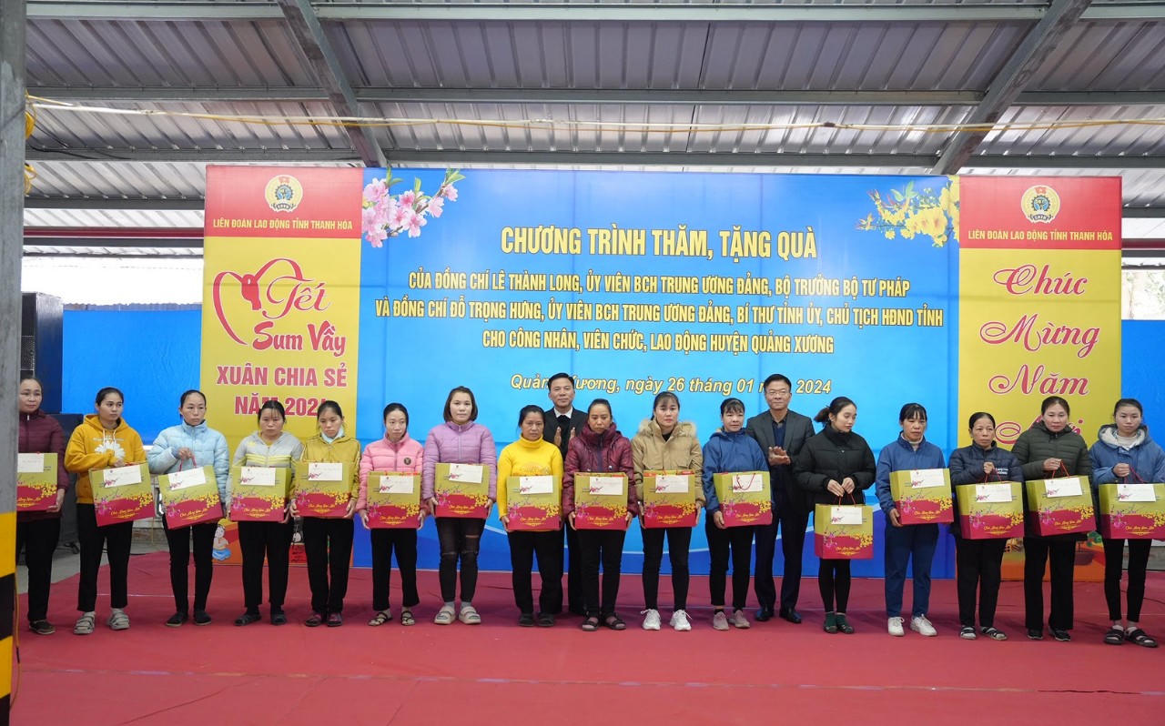 Nhân dịp Xuân Giáp Thìn, thay mặt Tổng Liên đoàn Lao động Việt Nam, Bộ trưởng Lê Thành Long và Bí thư Tỉnh ủy Đỗ Trọng Hưng cùng lãnh đạo Bộ Tư pháp, Liên đoàn Lao động, Sở Tư pháp tỉnh Thanh Hóa, huyện Quảng Xương đã tặng quà cho 100 công nhân, người lao động Công ty TNHH giày Alina thuộc Liên đoàn lao động huyện Quảng Xương.