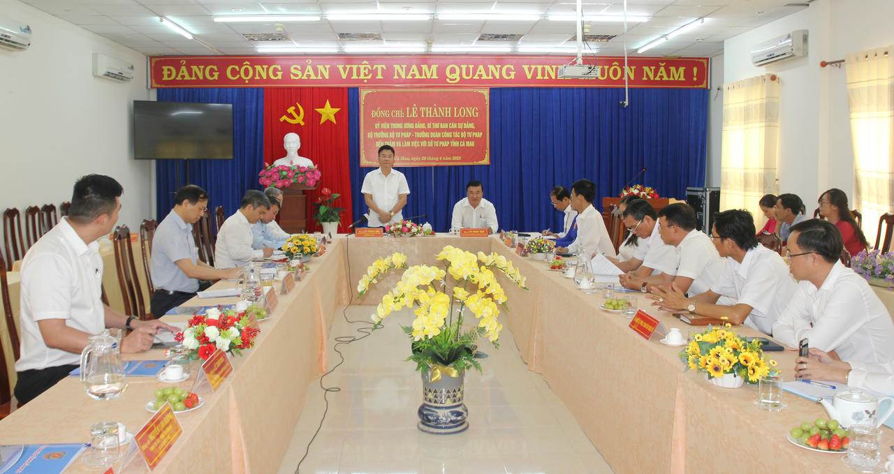 Phát biểu chỉ đạo, Bộ trưởng Bộ Tư pháp Lê Thành Long đánh giá cao kết quả Tư pháp Cà Mau đạt được trong thời gian qua. Đồng thời, Bộ trưởng Lê Thành Long đề nghị ngành Tư pháp Cà Mau quan tâm, đẩy mạnh thực hiện Đề án 06/CP của Chính phủ; tiếp tục nâng cao chất lượng công tác xây dựng, thẩm định, kiểm tra, rà soát, hệ thống hóa văn bản quy phạm pháp luật; tập trung tham mưu cho tỉnh các vấn đề pháp lý để kịp thời tháo gỡ khó khăn, vướng mắc trong sản xuất, kinh doanh. Đồng thời, chú trọng thanh tra, kiểm tra và xử lý vi phạm, nhất là công tác thanh tra chuyên ngành trong lĩnh vực hành chính Tư pháp, bổ trợ Tư pháp.