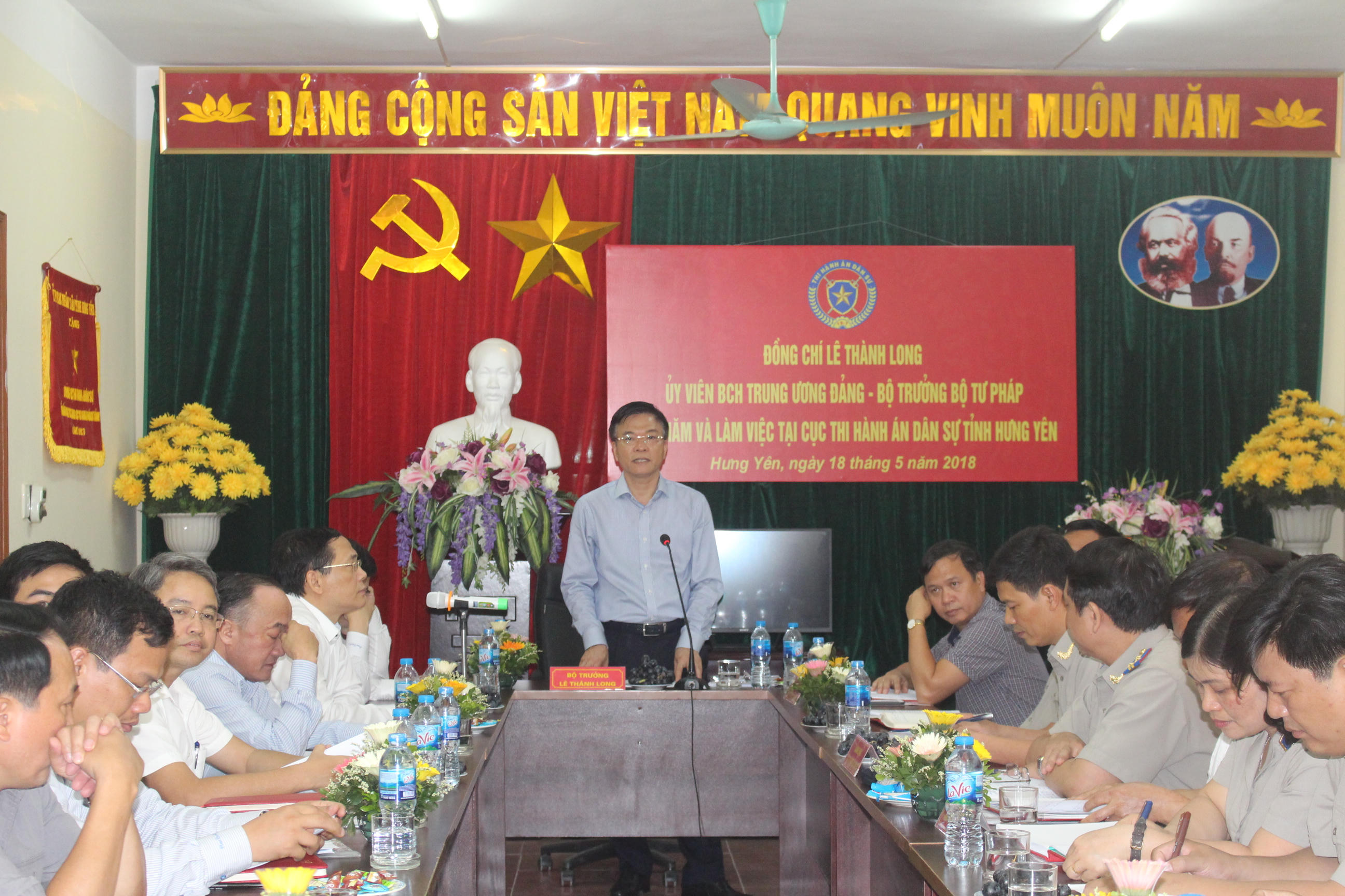 Sáng 18/5 Đoàn công tác của Bộ Tư pháp do Ủy viên Ban chấp hành TW Đảng, Bộ trưởng Lê Thành Long dẫn đầu đã đến làm việc tại Sở Tư pháp, Cục THADS, Đoàn ĐBQH tỉnh Hưng Yên.