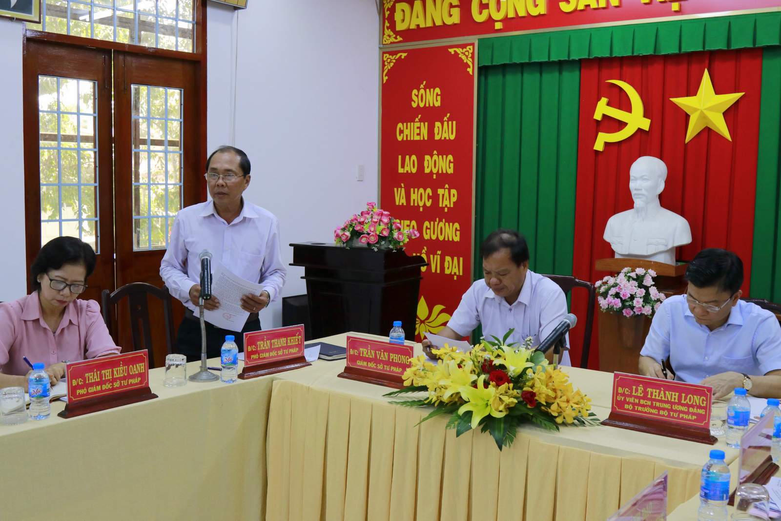 Trình này với Đoàn công tác về tình hình hoạt động Tư pháp địa phương, ông Trần Thanh Khiết, Phó Giám đốc Sở Tư pháp Trà Vinh cho biết, thời gian qua, ngành Tư pháp tỉnh đã triển khai thực hiện đồng bộ và đầy đủ khối công việc chuyên môn được giao phó. Tỉnh đã tập trung củng cố kiện toàn Hội đồng phối hợp Phổ biến giáo dục pháp luật cấp tỉnh, huyện.