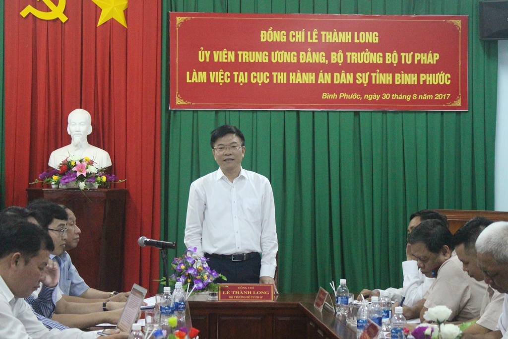 Đánh giá về công tác THADS tại Bình Phước, Bộ trưởng Lê Thành Long ghi nhận những cố gắng và đóng góp của THADS Bình Phước, Bộ trưởng đề cao tinh thần đoàn kết trong lực lượng THADS. Thời gian còn lại của năm không nhiều, cần phải cố gắng hơn nữa để hoàn thành chỉ tiêu. Phải quyết tâm hoàn thành các chỉ tiêu, cần quan tâm liên quan đến những Luật và Nghị quyết mới đang được triển khai, đặc biệt là Luật Bồi thường Nhà nước. Trong điều kiện hiện nay, khi các phương tiện truyền thông ngày càng phát triển, việc để xảy ra sai sót trong quá trình THA sẽ ảnh hưởng rất lớn đối với diện mạo chung của toàn ngành.