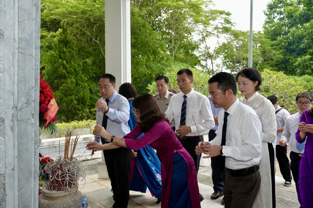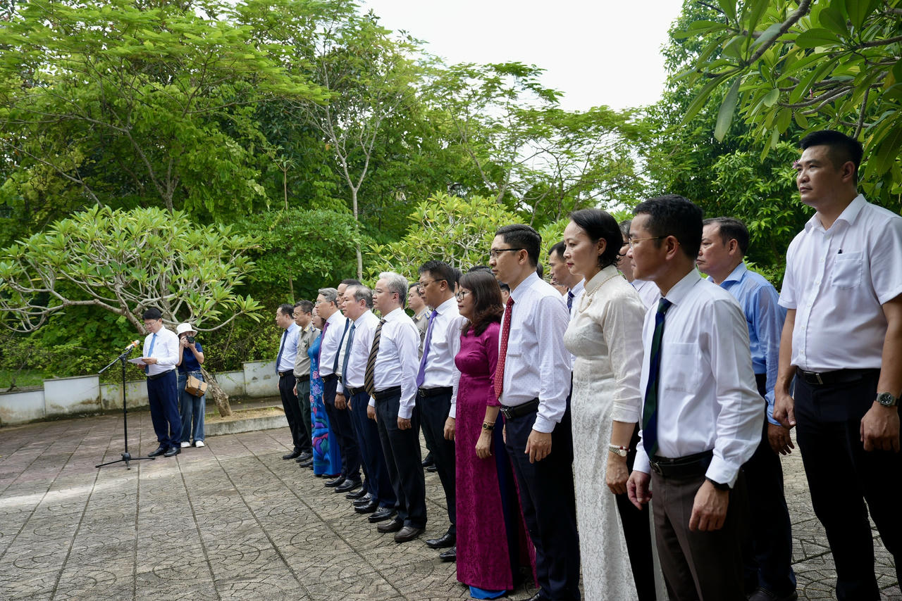 Bộ trưởng Nguyễn hải Ninh cùng đoàn công tác dâng hương tại Nhà tưởng niệm. |
