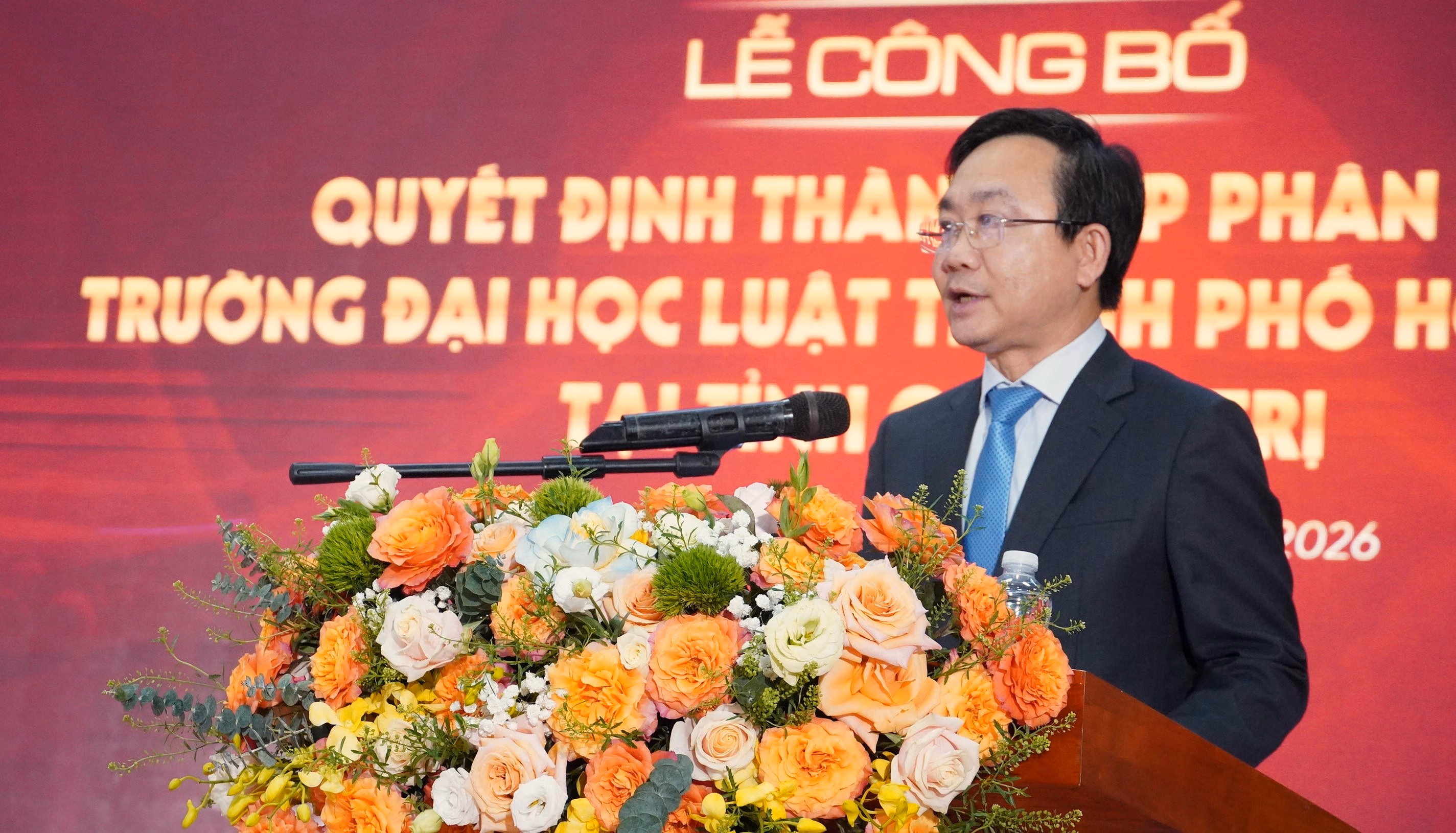 Phát biểu tại buổi lễ, Phó Chủ tịch UBND tỉnh Quảng Trị Hoàng Xuân Tân nhấn mạnh, việc thành lập Phân hiệu ULAW tại tỉnh là sự kiện có ý nghĩa đặc biệt quan trọng, góp phần cụ thể hóa chủ trương, chính sách của Đảng và Nhà nước về quy hoạch, sắp xếp mạng lưới các cơ sở giáo dục đại học. Nghị quyết Đại hội đại biểu Đảng bộ tỉnh Quảng Trị lần thứ I, nhiệm kỳ 2025 -2030 đã xác định một trong những nhiệm vụ trọng tâm là nâng cao chất lượng nguồn nhân lực và đội ngũ cán bộ, nhất là cán bộ cấp cơ sở, đáp ứng yêu cầu phát triển. Bởi vậy, công tác đào tạo, bồi dưỡng đội ngũ cán bộ, công chức, viên chức của tỉnh có ý nghĩa hết sức quan trọng trong quá trình thực hiện mô hình chính quyền địa phương 2 cấp.