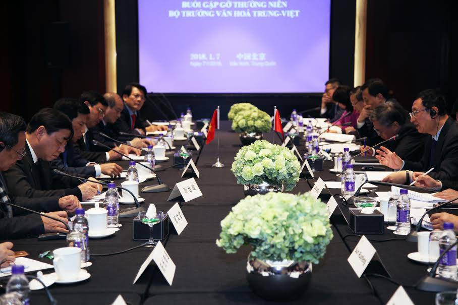 Hai Bộ trưởng cùng điểm lại tình hình hợp tác, triển khai Kế hoạch thực thi Hiệp định văn hoá hai nước giai đoạn 2016-2018, nhấn mạnh những kết quả nổi bật trong quá trình hợp tác. Trong đó, năm 2017 được coi là năm đỉnh cao trong quan hệ giao lưu hợp tác văn hoá Việt-Trung, Lãnh đạo hai Bộ đã có nhiều chuyến thăm và làm việc cùng nhau.