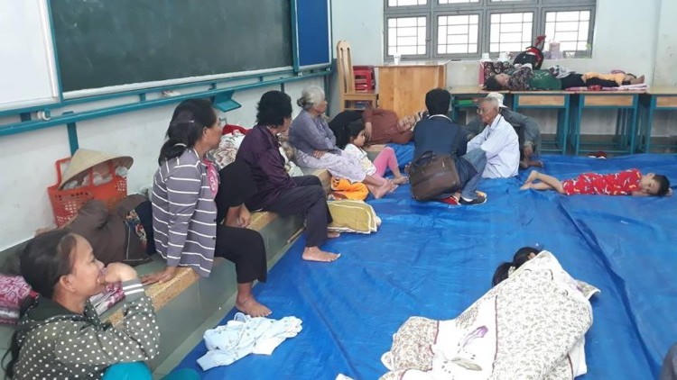 Đoàn đã trực tiếp xuống 1 điểm tránh trú tại trường THCS Cần Thạnh, thăm hỏi người dân di dời tránh bão.