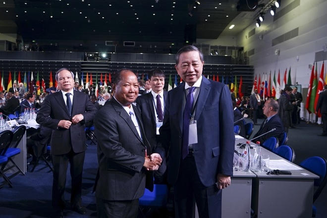 Bên lề Hội nghị, Bộ trưởng Tô Lâm đã có các cuộc gặp song phương với đồng chí Quách Thanh Côn, Ủy viên Bộ Chính trị, Bí thư Ủy ban Chính pháp Trung ương Đảng Cộng sản Trung Quốc; Bộ trưởng Bộ An ninh Lào Somkeo Silavong và Trưởng đoàn các nước Mông Cổ, Philippines để trao đổi về các vấn đề hợp tác song phương trong đấu tranh phòng, chống các loại tội phạm...