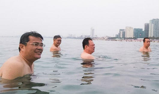 Trước đó, sáng 30/4, nhân dịp nghỉ lễ, hơn 10 lãnh đạo của Sở Tài nguyên Môi trường và Sở Văn hóa, Thể thao và Du lịch Đà Nẵng rủ nhau ra biển Phạm Văn Đồng (quận Sơn Trà) tắm biển, ngắm bình minh. Cũng tại vùng biển này có hàng trăm người dân và du khách vui đùa dưới dòng nước mát.