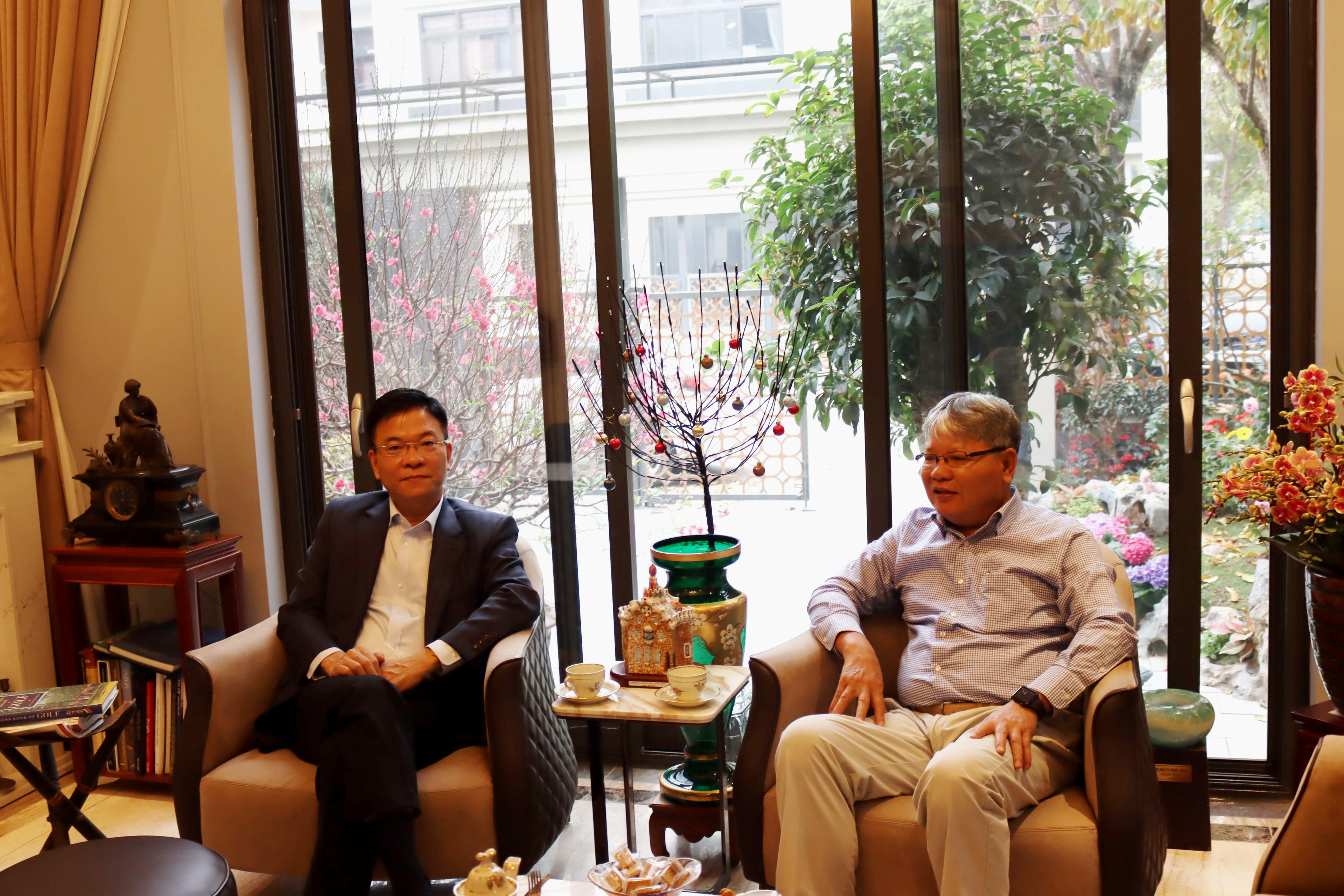 *. Tới thăm và chúc Tết gia đình nguyên Bộ trưởng Hà Hùng Cường, Bộ trưởng Lê Thành Long chia sẻ với nguyên Bộ trưởng những thành tựu mà Bộ, ngành Tư pháp đã đạt được trong năm vừa qua.