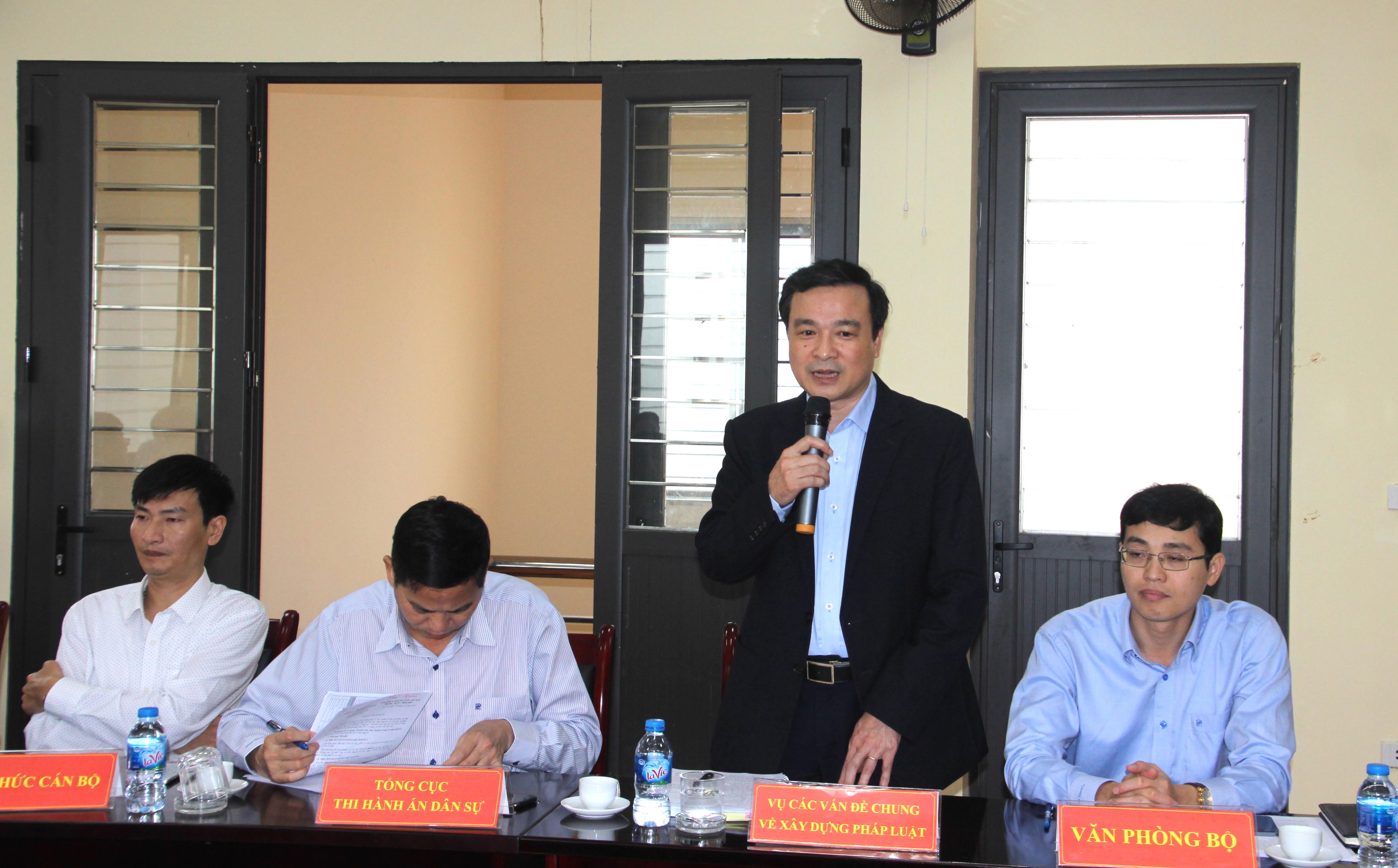 | Ông Nguyễn Thanh Tú, Vụ trưởng Vụ Pháp luật Dân sự - Kinh tế kiến nghị lãnh đạo UBND tỉnh Thái Nguyên quan tâm hơn tới công tác pháp chế trên địa bàn |