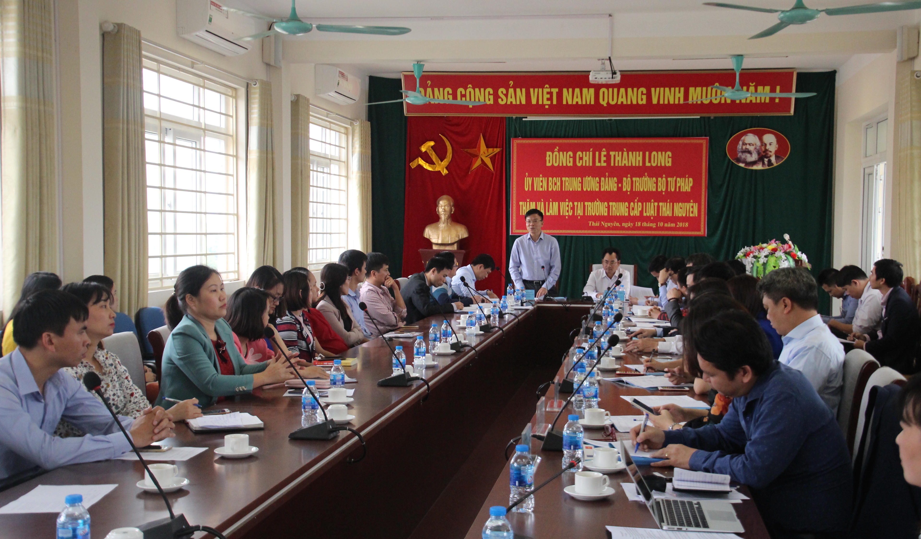 Phát biểu tại buổi làm việc, Bộ trưởng Bộ Tư pháp Lê Thành Long cho biết ông rất quan tâm, thậm chí luôn "đau đáu" với hoạt động của các Trường trung cấp Luật, trong đó có Trường Trung cấp Luật Thái Nguyên.