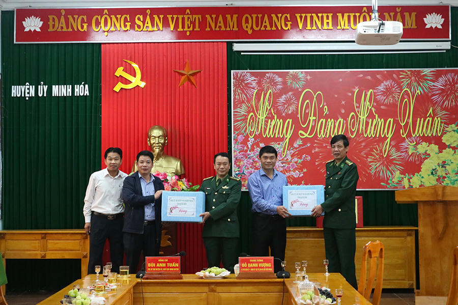 Trong dịp này, Đoàn công tác Bộ đội Biên phòng Việt Nam đã đến thăm, làm việc và tặng quà cho các cán bộ chiến sĩ thuộc 3 đồn biên phòng trên địa bàn huyện Minh Hóa gồm: Đồn Biên phòng Cà Xèng (xã Thượng Hóa), Đồn Biên phòng Ra Mai (xã Trọng Hóa) và Đồn Biên phòng Cửa khẩu Quốc tế Cha Lo (xã Dân Hóa).